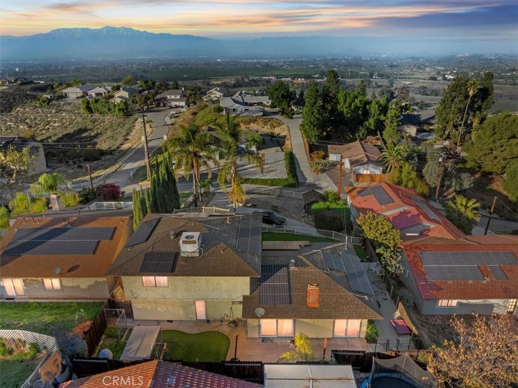 PANORAMIC PERFECTION in the hills of Riverside! This beautiful two-story custom home offers a lifestyle defined by its views. The entire property radiates undeniable character and charm, feeling warm and welcoming from the moment you arrive. Inside, the light-filled interior features warm wood laminate flooring and an inviting, open-concept atmosphere. The heart of the home centers around a spacious family room and an oversized formal dining area, anchored by a classic brick fireplace. Culinary enthusiasts will appreciate the modern kitchen, fully upgraded with custom cabinetry, sleek granite countertops, and premium stainless-steel appliances. From the massive front deck, experience a breathtaking three-county panorama of city lights, rolling valleys, and mountain peaks—the ultimate backdrop for your morning coffee or sunset glass of wine. Beyond its beauty, the location is unbeatable. Situated in a serene and highly desirable neighborhood, you are just minutes from Riverside’s premier amenities—including the historic Mission Inn, top-tier shopping at the Galleria at Tyler, and the vibrant culture of Downtown Riverside—all while maintaining easy freeway access for a seamless Southern California commute. Complete with tasteful, low-maintenance landscaping and a state-of-the-art solar and battery system, this home offers a rare opportunity to enjoy high-end, sustainable living in one of the region's most coveted settings.