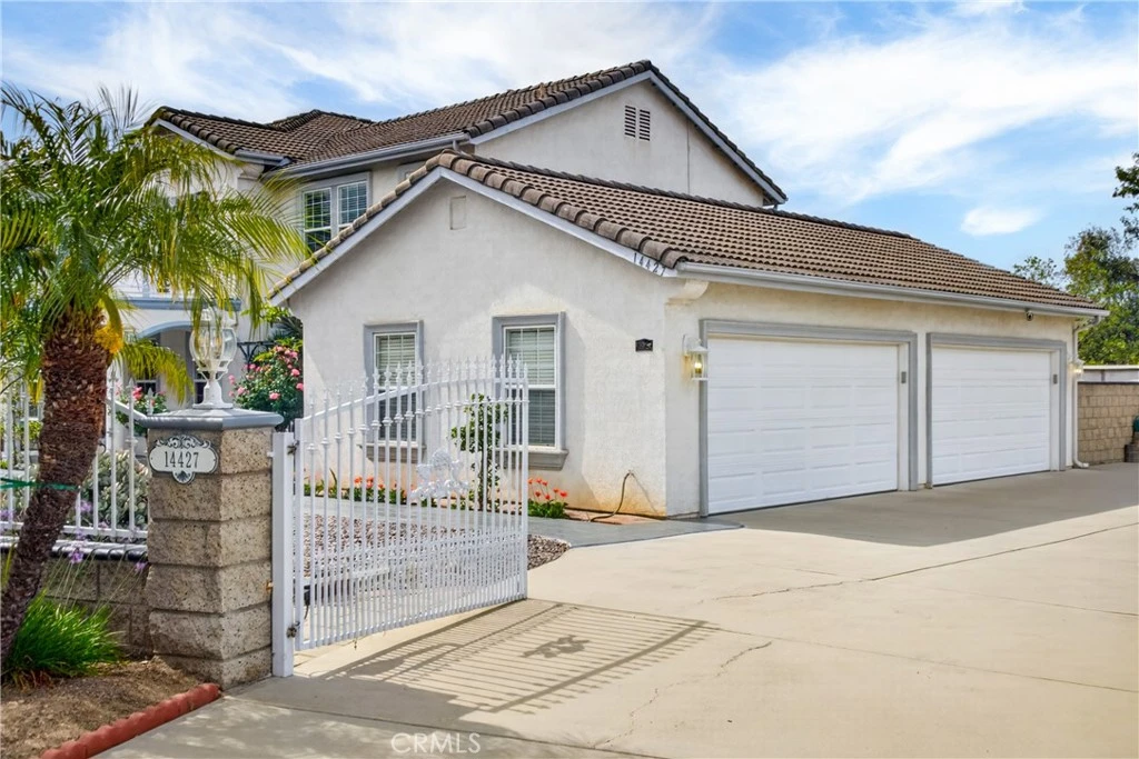 Crystal Ridge Estates. This stunning home is sitting on a spacious and beautifully landscaped lot overlooking the Alessandro Arroyo and Creek. This semi-custom Steven Walker home features an expansive and open floor plan with a stunning oval entry foyer, boasting a curved stair way and a mid-level library/office with custom built-ins. Off the entry foyer are separate formal living and dining rooms (w/butler’s pantry). The spacious great room has built in surround sound and a welcoming fireplace. The gourmet kitchen is ideal for any type of entertaining with a center island/breakfast bar, 5 burners cook top stove, double ovens, walk-in pantry, an abundance of maple cabinetry, granite counter tops and a breakfast nook. The main floor also offers a private bedroom suite with its own bathroom. The Primary suite upstairs offers a sitting area and entry to your balcony that looks out towards the relaxing Arroyo and your meticulously landscaped yard. The primary bathroom includes a generous closet, fireplace, large soaking tub, separate shower and dual sinks with a sit-down vanity area. There are 3 additional large bedrooms upstairs with 2 additional full baths. One of the bedrooms offers entry to the private front balcony that offers views towards the hills and city lights. The 4-car garage provides plenty of inside parking featuring epoxy floors and an abundance of storage cabinets and shelving along with there being potential for plenty of RV/boat/toy parking. The lush, landscaped grounds with several fountains and beautiful flowering plants is private and completely fenced and gated. The Citrus grove is just steps away and tucked alongside the Arroyo. This home has Owned Solar and artificial turf to add to its appeal. The large lot offers potential for expansion with possibility to build an ADU or workshop. This highly desirable area offers some of the best that Riverside has to offer, schools, shopping, dining and nearby to the Country Clubs.