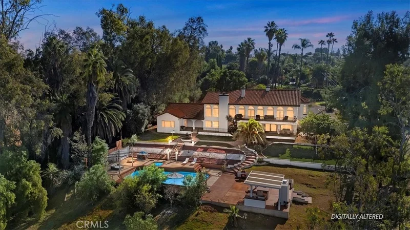 Exquisite Spanish Colonial Estate nestled in the heart of Arlington Heights tucked away for exceptional privacy this remarkable Estate overlooks the City of Riverside, offering breathtaking views & City lights. Set on 3.77 acres of private fenced and gated grounds, this is a rare estate property showcasing expansive open land. Circular driveway w/pavers leads to the residence enhancing its grand yet secluded presence. Spanning 4,667 square feet the home features 5 bedrooms and 3.5 bathrooms, including two primary suites thoughtfully designed for comfort and multigenerational living. Architectural elegance is evident throughout with arched walkways. Expansive windows in every direction that flood the home with natural light and capture sweeping views. Completely updated and remodeled, offering large porcelain tile and plank wood flooring throughout. Formal living and dining rooms provide entertaining spaces while the heart of the home is the gourmet kitchen, open to the family room with a wood-burning fireplace. The kitchen features an expansive center island, quartz countertops, stainless steel appliances, pot filler, professional-series range with double convection ovens, built-in 60-inch refrigerator, and a large walk-in pantry. Sliding glass doors open to the back patio creating an indoor-outdoor living experience and extending the interior living space. A private upstairs office offers a quiet retreat for work or study. Downstairs, all five generously sized bedrooms are thoughtfully located. The primary suite is its own private wing, double doors with a private office. Wood-burning fireplace, dream walk-in closet and a luxurious ensuite bathroom featuring dual sinks, a freestanding soaking tub, and a separate shower enclosure. French doors lead directly to the private back patio enhancing the resort-like feel. Also on the lower level is a second living room with its own wood-burning fireplace, three additional guest bedrooms, and a second primary suite, perfect for extended family. The outdoor space is a true private oasis, featuring a pool and spa, a private outdoor kitchen, and expansive patio areas ideal for entertaining or relaxing.The property has a detached three-car garage. Conveniently located close to fwys. top-rated schools, and Victoria Country Club. This exceptional estate offers timeless Spanish Colonial charm, modern luxury, privacy, and unparalleled lifestyle living in one of Riverside’s most sought-after neighborhoods.