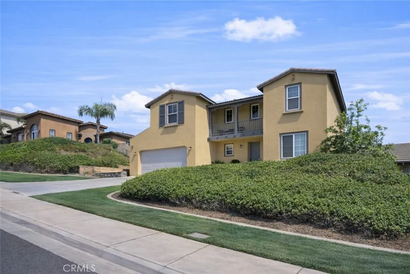 Welcome to luxury mountaintop living in the exclusive Lake Hills Reserve community! This designer-updated 5-bedroom, 4-bathroom residence offers resort-style living with a highly desirable layout featuring a full bedroom and bathroom on the first level, ideal for guests or multi-generational living. The main living areas boast soaring ceilings, while the gourmet kitchen showcases a center island, walk-in pantry, and ample storage. On the second floor, the private primary suite is separated from the other generously sized bedrooms and includes a retreat area, balcony with panoramic views, spa-inspired bath with soaking tub and walk-in shower, elegant quartz and marble finishes, and his-and-hers closets. The entertainer's backyard is beautifully designed with a Bogner saltwater pool and spa, built-in BBQ, and dual fire pits, perfect for both entertaining and everyday enjoyment. An extra-long driveway and tandem garage complete this exceptional home. Enjoy walking distance to Lake Hills Elementary School and HOA amenities including a private residents' club with pool, playground, and open-air fireplace, plus hiking trails, stunning sunsets, and mountaintop serenity—all while being conveniently close to Riverside's amenities. A must-see home that truly needs to be experienced in person to appreciate.