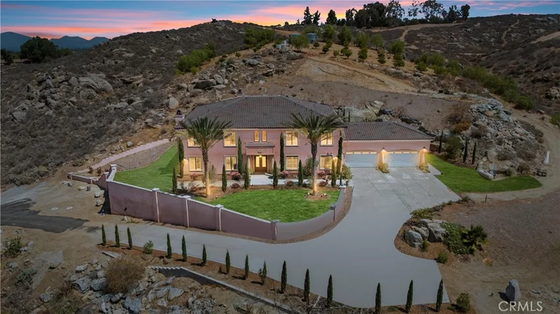 Situated on 2.44 usable acres between Riverside’s coveted Alessandro Heights and Woodcrest communities, this luxury ranch-style estate blends timeless Tuscan-Spanish interiors with expansive land and lifestyle freedom rarely found this close to the city. Offering over 7,100 sq. ft., the home is built for hosting and multigenerational living, featuring soaring coffered ceilings, wide hallways, multiple living and dining areas, and an open layout designed for gatherings of any size. The chef’s kitchen with butler’s kitchen is ideal for entertaining, events, or private catering. Six spacious en-suite bedrooms, including a grand primary retreat with spa-style bath and walk-in closet with private laundry hookups, provide comfort and privacy throughout. A private library and executive office add flexibility for work or retreat-style living. Outside, the property opens up endless opportunity—ideal for a private ranch lifestyle, equestrian use, vineyards, event hosting, or off-road recreation with space for four-wheelers, dirt bikes, and razors. The 4-car garage with 30-ft ceilings and car-lift capability accommodates collector vehicles, toys, or workshop conversion. Built for long-term sustainability, the estate includes two 5,000-gallon water tanks, two private fire hydrants, a custom four-tank septic system, and four 10-ton HVAC units. Mature citrus and olive trees frame the property, with ample room for a luxury pool, ADU, or expanded outdoor entertaining. A rare opportunity to own a private ranch estate with Spanish-Tuscan character, land, and infrastructure—designed for those who want space, privacy, and the freedom to create something extraordinary.