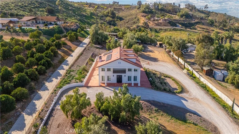 Hill Top turnkey private custom home, sprawls over 2.5 acres welcoming you with an estate-like experience as you drive through it's private gate. It' has been updated to display it's elegance and designed for modern comforts with abundance of windows and balconies to take in the views. It has 4 spacious bedrooms and 3 full bathrooms and 1/2 bathroom. Residential Agriculture zoning allows for horses and livestock on the property, The property have a design area for events and parties. A lot of fruit trees and 40 Avocado trees. Beautiful views, low taxes, no HOA, very private, 3 car garage.
