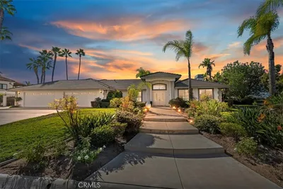 Stunning and sprawling 2-story Spanish style home with a grand entryway featuring arched doorways, wrought iron details, and a vaulted ceiling. This home offers an open concept floor plan featuring 5 bedrooms and 5 bathrooms with an attached 2 car garage sprawling over 4,214 SqFt on a large 19,166 SqFt lot! This home boasts curb appeal with its grand entryway, stone exterior accents, plush landscaping, balcony, and a tile roof however the real treat is the ideal interior layout accompanied by a backyard perfect for the family who loves to entertain! Upon entry you are greeted by a formal entryway that flows to the staircase, the living room, kitchen, and a formal dining area. The kitchen has stone countertops with an island, a tile backsplash, built-in 6-burner range, built-in microwave, dishwasher, and double oven. The first floor is abundant with natural lighting that fills the high ceilings, a cozy fireplace, the master bedroom with an attached master bathroom, a 2nd bedroom, a 2nd bathroom, and access to the beautiful back yard through sliding glass doors that lead to your very own backyard oasis. The backyard has a stunning pool featuring a wading area, a waterfall, and a jacuzzi. The backyard is complete with a gazebo, a built-in BBQ area, and the perfect combination of hardscaping with landscaping. The stairs lead to a grandiose landing area and balcony as well as the other 3 bedrooms and 3 bathrooms on the second floor. Ideally located in a serene rural area of Riverside near the 215 freeway, lakes, many shopping centers, and many of the local beloved parks and golf courses. This home is abundant with curb appeal and amenities and will not last long, come view it and submit your best offer!