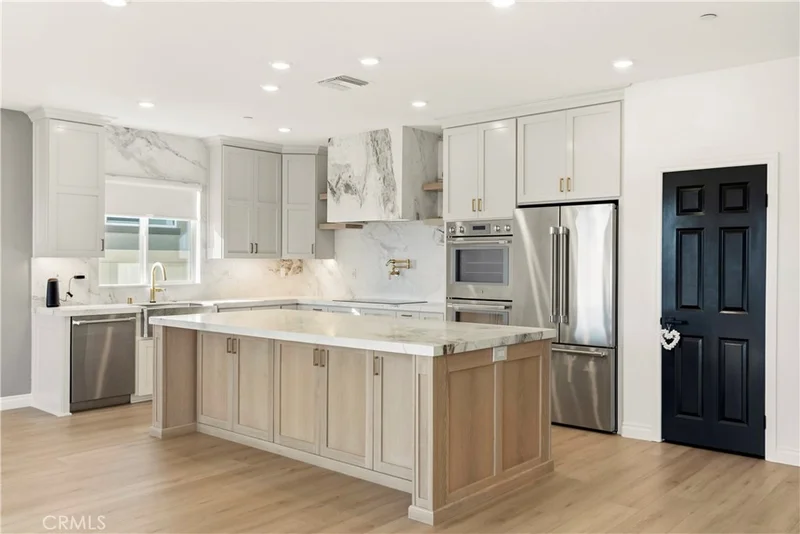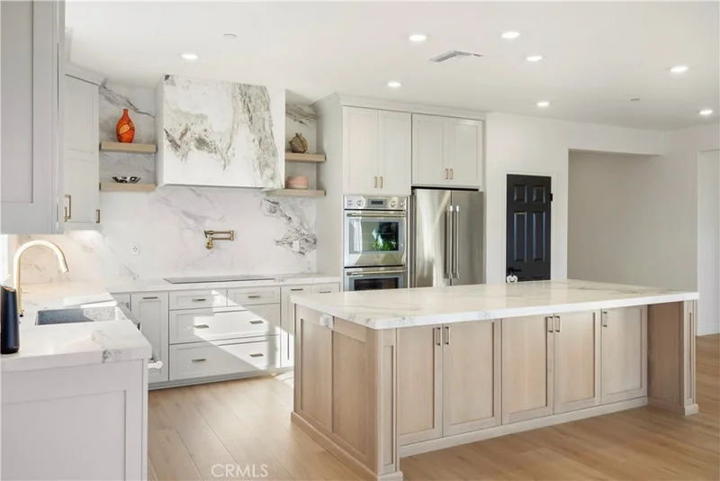 DESIGNER KITCHEN | LUXURY UPGRADES | If you appreciate a true chef’s kitchen and the ease of single-story living, this exceptional four-bedroom residence was designed with you in mind. Showcasing over $90,000 in high-end upgrades, it has been thoughtfully reimagined with refined materials and elevated finishes. The result is a sophisticated, move-in-ready home featuring premium kitchen appliances, curated designer details, and a level of comfort that quietly sets it apart in one of Riverside’s most desirable communities comprised exclusively of single-story homes. DESIGNER KITCHEN | The kitchen is a true showpiece, anchored by a professional-grade Thermador appliance suite including double convection ovens, electric cooktop, dishwasher, custom hood, refrigerator and built-in microwave drawer. Calcutta honed marble flows across the countertops, oversized island, and full-height backsplash, offering understated elegance and timeless durability. Custom cabinetry with soft-close drawers provides tailored storage solutions, finished in Solstice by Sherwin-Williams along the perimeter and complemented by a warm white oak island that adds depth and natural contrast. Brizo brushed nickel fixtures, including a SmartTouch faucet and wall-mounted pot filler, pair seamlessly with a Native Trails farmhouse-style brushed nickel sink to complete this bespoke culinary space. PRIMARY SUITE RETREAT | When it is time to unwind, the primary suite offers a quiet and comfortable escape. Natural light fills the room, enhancing its calm and cohesive design. The en-suite bath features dual vanities, generous counter space, and a spacious walk-in shower, creating a setting that feels clean, private, and comfortably refined. A well-sized walk-in closet adds both functionality and everyday convenience, completing this inviting retreat. ELEVATED LIVING | From the moment you enter, upgraded luxury vinyl plank flooring sets a warm, durable foundation. The open great room seamlessly connects the family and dining areas, creating a space that feels inviting for everyday living and refined for entertaining. Upgraded baseboards and modern lighting add clean architectural detail, while the customized laundry room with added storage enhances both function and style. Located within the highly regarded Riverside Unified School District, this residence offers a refined lifestyle in one of Riverside’s most desirable neighborhoods.