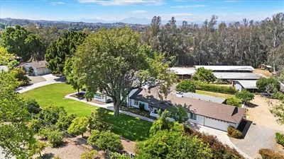 Two visionary dreams came to fruition in 2016. The first being that the owner wanted to purchase this private property. The second was to build a grand estate on this property for his family. This labor of love is nestled in the serene, sought after neighborhood of Arlington Heights in Riverside County. This expansive single story, 4500 square foot beauty sits proudly on 5 acres of land. Land that is shared with over 500 thriving naval orange and avocado trees! As you arrive you will be greeted by a long- gated driveway that leads to the main entrance. Large wrought iron double doors invite you in. Inside, high ceilings, luxury vinyl plank flooring and natural light create an open, airy atmosphere throughout. The expansive great room serves as the heart of the home; the living room boasts entertaining space with fireplace and the formal dining area is perfect for gatherings. Your eyes will travel to the impressive chef's kitchen that is fully equipped with top tier Viking and Subzero appliances. There is custom cabinetry, walk in pantry and large windows that provide endless views of the orange grove and grounds. The home offers 4 generously sized bedrooms, each with its own private full bathrooms providing ultimate comfort and privacy. There is an office with custom cabinetry and glass double doors. Additional conveniences include dedicated laundry room, multiple storage closets and a half bathroom thoughtfully located in the attached 4 car garage-perfect for pool parties, outdoor gatherings and guests. Sliding doors open to your private 5-acre paradise and your nose is tickled by the scent of sweet orange blossoms. The expansive outdoor covered patio features a lounging area, built-in BBQ island grill and refrigeration unit. Children will be thrilled to find their own private enclosed playground and sandbox off to the side. For resort like luxury there is a refreshing pool with waterfall perfect for those scorching California summers!For perhaps extended family, guests or tenants there is a 1200 square foot ADU (Accessory Dwelling Unit) complete with 2 bedrooms, 2 bathrooms and laundry room. A 3000 square foot shed is also located on the property. It is the perfect size for large recreational equipment and vehicles. This palatial property is truly a rare find and delivers the ultimate California dream. It’s ready for your family to call home.