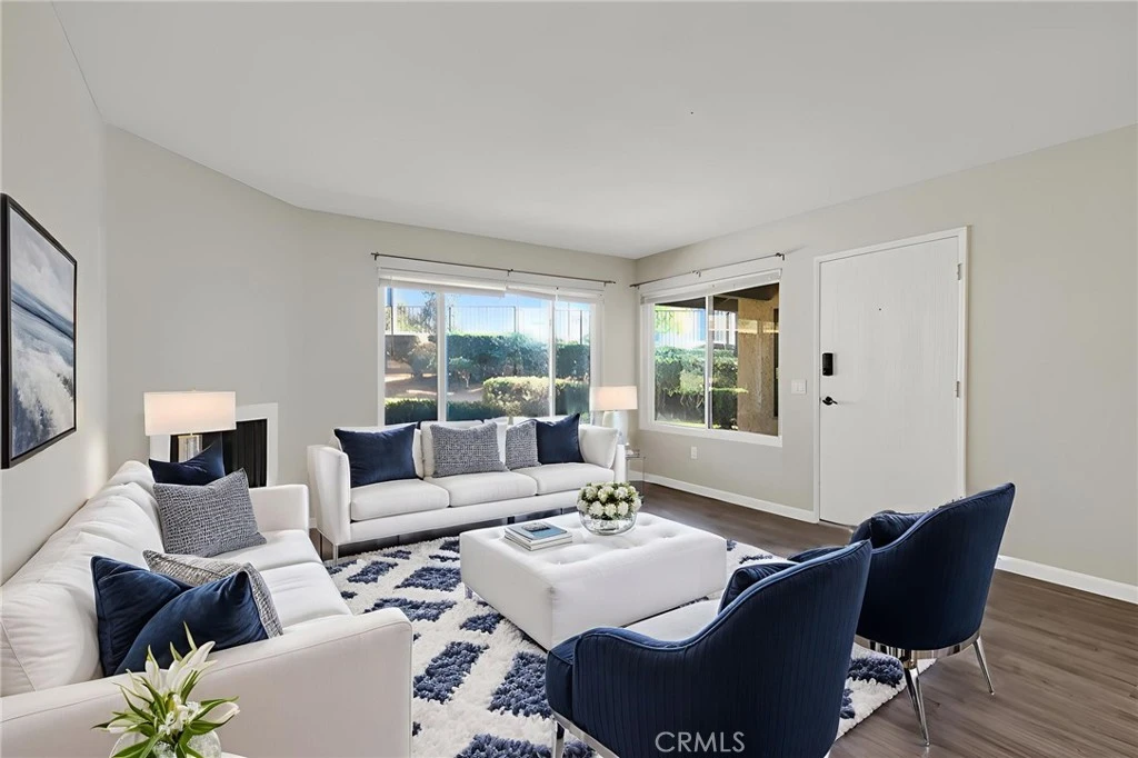 UC RIVERSIDE - Welcome to this charming single-story condo just a short walk to UC Riverside and University Village! Step inside to an inviting open-concept living and dining area featuring a cozy fireplace and seamless flow into the kitchen—perfect for both everyday living and entertaining. The secondary bedroom is generously sized with ample closet space, while a full hallway bathroom provides convenient access for guests. The large primary suite offers a private retreat complete with an en-suite bathroom, walk-in closet, and its own patio with fruit trees—an ideal spot to relax and unwind. Additional highlights include a covered carport and access to community amenities such as a pool, spa, BBQs, and on-site laundry facilities. A fantastic opportunity in a prime location near campus, shopping, dining, and more! (3 of the photos have been virtually staged.)