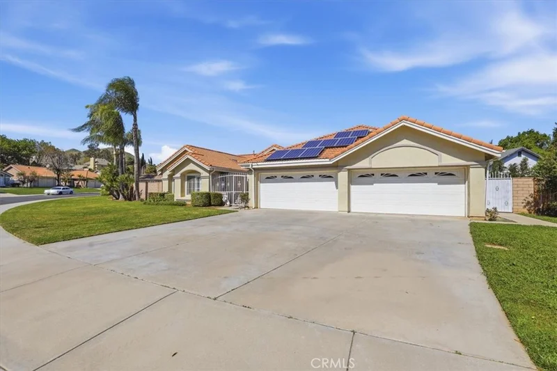 Welcome home! This is the one you’ve been waiting for. Properties in this community rarely come up for sale. This beautiful single-story home offers plenty of space to spread out and bring all your toys, while still being conveniently located near shopping and freeway access for an easy commute. This spacious four-bedroom, two-bathroom home boasts many wonderful features and updates. The entryway opens to a living room with high ceilings and a cozy fireplace, leading to a large dining room that flows into the kitchen. The kitchen opens to another spacious eating area and has been updated with Corian countertops and new appliances. The home features four nicely sized bedrooms in a split layout. The primary retreat is large and includes a walk-in closet and an en-suite bathroom with a separate shower and soaking tub—perfect for relaxing at the end of the day. Additional interior upgrades include wood plantation shutters and brand new carpet throughout, a new screened back door, and upgraded UV screens on some windows. Outside, the property features a private in-ground pool and spa that have been recently resurfaced, along with an Alumawood patio cover. The yard is low maintenance and perfect for entertaining. Garden lovers will appreciate the mandarin and avocado trees, with plenty of room for additional planting. There is also a pool shed and an additional storage shed. If storage is important, this home delivers with a massive four-car garage featuring built-in cabinetry that will stay with the home. It’s perfect for the auto or toy enthusiast, or could easily be converted into a workshop or craft space. And if that’s not enough, the home also includes a paid-off solar system. Come see this beautiful property—your paradise awaits!