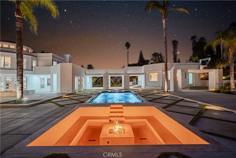 Situated within the prestigious Hillcrest Estates, 6910 SandTrack presents a rare opportunity to own a fully renovated, gated estate in Riverside. Spanning approximately 5,500 square feet on two fully fenced acres, this exceptional property has been completely renovated inside and out, offering a seamless blend of modern luxury and timeless design. A private gated entry welcomes you into a residence featuring six bedrooms and six-and-a-half baths, thoughtfully designed for both grand entertaining and elevated everyday living. Interiors are highlighted by white oak herringbone flooring, dramatic soaring ceilings, and multiple linear gas fireplaces that create warmth and architectural interest throughout. The chef’s kitchen is a showpiece, appointed with top-of-the-line Wolf appliances with book matched slab counters and splash designed to impress. The home is enhanced with state-of-the-art smart home features, offering effortless control of lighting, climate, security, and entertainment. Complementing the main residence is a private guest house complete with its own bathroom and kitchenette, ideal for extended family, overnight guests, or a private home office or studio—providing comfort, privacy, and flexibility. The outdoor living experience is truly resort-inspired, featuring a pool and spa, full tennis court, and an inviting outdoor fire pit, an oversized fire feature, all set within an expansive, beautifully landscaped grounds. Fully fenced and gated, the estate offers exceptional privacy while remaining close to city conveniences. A rare, turnkey offering in the Hillcrest Estates, this extraordinary property delivers refined luxury, modern technology, and a lifestyle designed to impress.