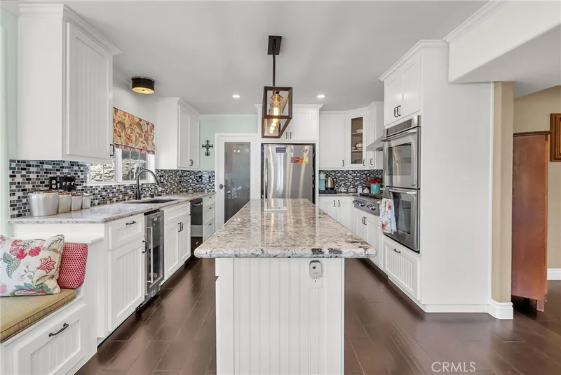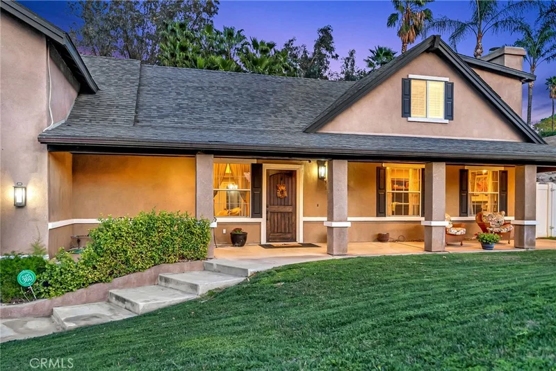 Sited on a sprawling .76-acre lot, this beautifully designed ranch-style home offers a perfect blend of comfort, sophistication, and functionality. A charming covered front porch welcomes you inside, where soaring vaulted ceilings, rich wood flooring, and a striking stacked-stone fireplace create a warm and inviting living space. Seamlessly connected to the living room, the open-concept family room, dining area, and remodeled kitchen form the heart of the home. The kitchen has been thoughtfully updated with white shaker-style cabinetry, granite countertops, and premium stainless-steel appliances. A cozy breakfast nook offers views of the backyard, making it an ideal spot for casual dining. A spacious downstairs bedroom with an ensuite bath is smartly positioned off the family room - perfect for guests or multi-generational living. A graceful spiral staircase leads to the second level, where a mezzanine-style hallway connects four well-appointed bedrooms. Positioned with privacy in mind, the primary suite is a true retreat, featuring a generously sized bedroom, a spa-inspired bathroom with a glass-enclosed walk-in shower and clawfoot tub, and a custom-built closet room for exceptional storage. Stepping outside, you'll find expansive decking that transitions into a covered patio, creating the perfect setting for outdoor entertaining. The focal point of the backyard is a Bogner pool and spa, offering a refined contrast to the natural watershed that meanders through the property. Located in one of Riverside’s most desirable neighborhoods, this home offers peaceful living and modern convenience.