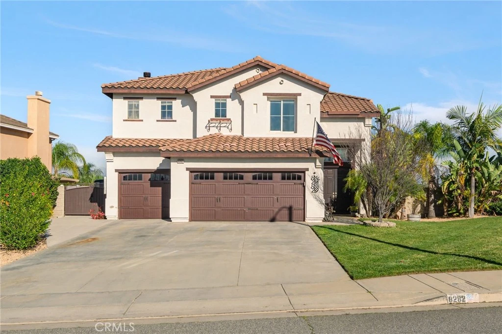Welcome to PARADISE—inside and out! Located in the sought-after Orangecrest area, this Tropical Paradise offers a RESORT-LIKE backyard with POOL, SPA, SLIDE, WATERFALL, GROTTO and OUTDOOR KITCHEN that will have you feeling like you're on vacation anytime! Discover refined living in this stunning 4-bedroom, 3-bathroom home, perfectly situated on a corner lot with exceptional curb appeal. Step inside to an impressive foyer featuring sky-high ceilings and picturesque windows that bathe the home in natural light. The thoughtfully designed floor plan flows into a welcoming living room with a cozy fireplace and an inviting connection to the kitchen, creating a comfortable space for everyday living and entertaining. The kitchen is beautifully appointed with a large center island, granite countertops, ample cabinetry, and updated appliances. Nearby, the dining room is framed by expansive windows, providing the perfect setting for memorable dinners and gatherings. The laundry room offers built-in linen storage and generous counter space for folding and organization, with a convenient half bath adjacent for guests. A versatile upstairs loft provides endless possibilities as a home office, gym, nursery, or creative space. The primary suite offers privacy and comfort along with large windows showcasing the surrounding views, plus TWO Primary Closets. The spa-inspired ensuite bathroom features a soaking tub, walk-in shower, and dual vanity. Upstairs, a contemporary landing leads to three additional bedrooms and a full bathroom for family or guests. Step outside to your private backyard retreat, where a stunning pool and spa with an exciting waterslide take center stage. A covered patio offers shaded space for alfresco dining, while the built-in barbecue and seating areas make entertaining easy. The landscaped yard is perfect for gatherings, outdoor meals, or relaxing in the sunshine. The three-car garage offers New Garage Doors and ample room for parking or storage, while gated additional parking provides convenience for toys. For max efficiency, enjoy OWNED SOLAR and NEW AC UNITS! Ideally located near Tomas Rivera Elementary and Amelia Earhart Middle School, this exceptional home combines comfort, style, and convenience. Don’t miss your opportunity to make this beautiful property your own—just in time to splash into summer.