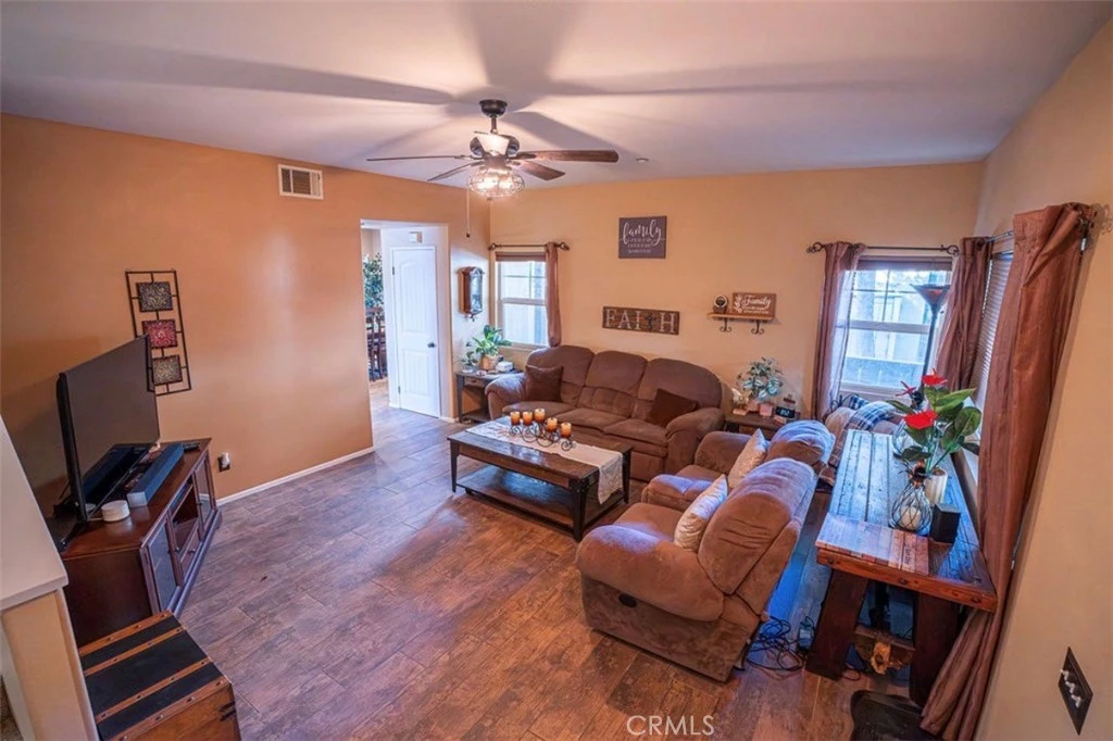 Turnkey two-story home located in a private gated Village Parks community. This thoughtfully designed floor plan showcases pride of ownership throughout. The inviting wrap-around covered porch offers charming curb appeal and overlooks park-like greenbelt views. Interior upgrades include fresh paint, recessed lighting, updated flooring, and a spacious living area with abundant natural light and direct access to a private patio. The remodeled kitchen features modern cabinetry, granite countertops, a stylish backsplash, and stainless steel appliances. Upstairs, you’ll find generously sized bedrooms including a spacious primary suite with new carpet, updated finishes, ceiling fan, and an upgraded bathroom. Additional highlights include an upstairs laundry room, linen storage, and a third remodeled bathroom. Enjoy multiple outdoor living spaces, including a private backyard, covered Alumawood patio, stamped concrete, firepit area, and custom retaining wall—perfect for entertaining. A separate gated side yard adds extra privacy and flexibility. This end-unit home offers enhanced privacy along with a 2-car garage and additional parking. The community features tree-lined walkways, a playground, and a well-maintained. Ideally located minutes to California Baptist University, Schools, shopping, dining, and easy freeway access. A truly move-in ready home offering comfort, style, and convenience.