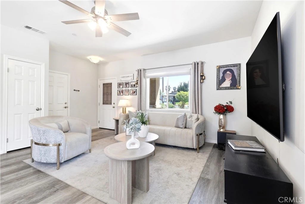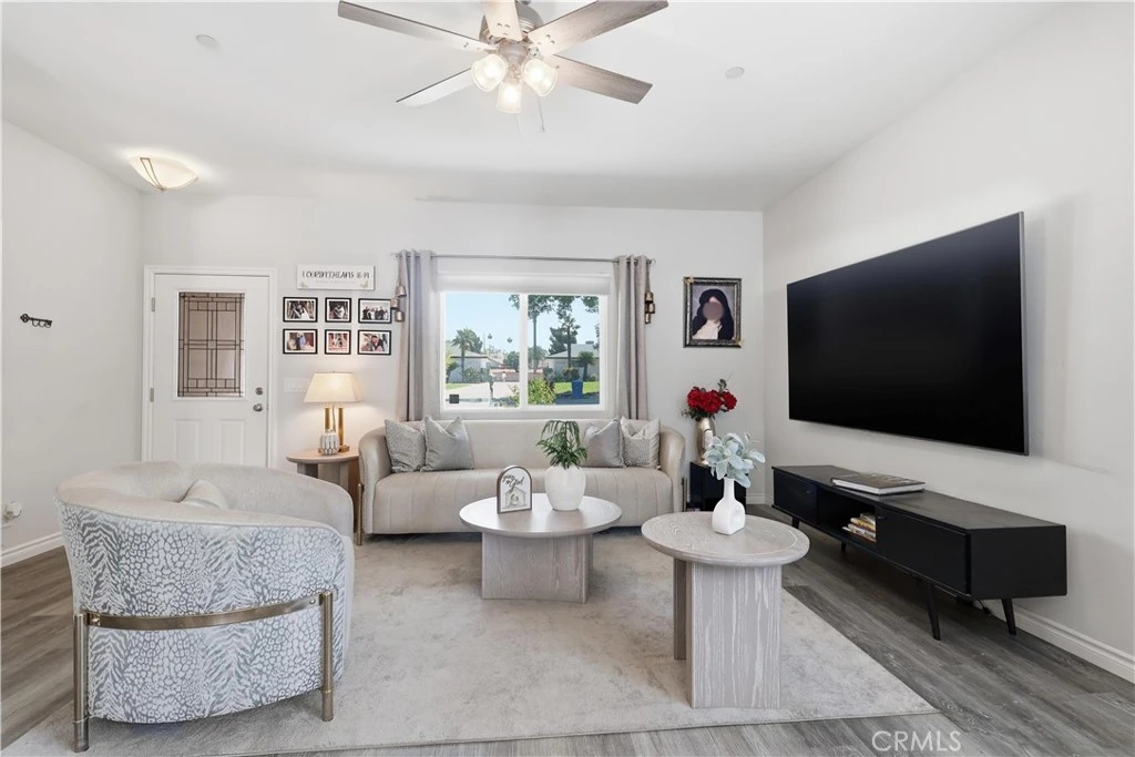 Newly built in 2022, this exceptional residence offers modern convenience and comfort with a Tesla 240V charger, a spacious driveway, and a pet-friendly setting complemented by a generous backyard featuring a gazebo- perfect for hosting guests, entertaining, or enjoying everyday gatherings. This single-story residence features 9-foot ceilings, exquisite vinyl flooring, energy-efficient UV-blocking windows throughout to help reduce heat, a newly installed vinyl fence/gate, a tankless water heater, and a dedicated laundry room with ample cabinetry and an additional pantry providing exceptional convenience and storage. At the heart of the kitchen, an impressive 8-foot quartz island with built-in cabinetry and integrated outlets takes center stage, paired with stainless steel appliances, soft-close drawers, and recessed lighting giving off a modern appeal. All three bedrooms mirror each other with modern ceiling fans, while the primary suite stands out by offering a walk-in closet and a walk-in shower, with the secondary bathroom providing the comfort of a full bath with a tub. Just a stone throws away from the 91 Freeway, Galleria at Tyler, gas stations, banks, and everyday essentials, this newer residence offers modern design paired with exceptional accessibility to daily conveniences.
