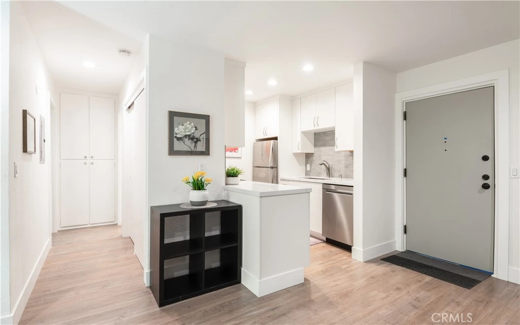 Exquisitely remodeled condo in the highly sought-after Rolling Hills Estates, located within the resort-style community of The Estates. This TOP floor, END unit one bedroom, one bath residence offers exceptional privacy with no one above and showcases a bright, open-concept floor plan designed for effortless indoor-outdoor living. The spacious living area extends to a private balcony overlooking tranquil treetop and community views, creating a peaceful retreat. The designer kitchen is beautifully appointed with quartz countertops, a custom tile backsplash, newer electric range, stainless steel refrigerator and dishwasher, upgraded fixtures, and generous cabinetry. The bedroom serves as a serene sanctuary with direct balcony access and a large walk-in closet. The spa-inspired bathroom features a sleek walk-in shower with glass enclosure, modern fixtures, and updated ventilation. Additional enhancements include recessed lighting, ceiling fan, updated wall heaters, and an upgraded electrical subpanel, reflecting quality and attention to detail throughout. Residents of The Estates enjoy an array of resort-style amenities, including pool, tennis courts, spa, fitness center, sauna, clubhouse, and recreation rooms with billiards and table tennis. The community also offers secured parking, scenic walking paths, and lush, meticulously maintained grounds. Ideally located near shopping, dining, golf courses, scenic hiking and equestrian trails, and the South Coast Botanic Garden. Served by the award-winning Palos Verdes Peninsula Unified School District. HOA dues include water, trash, roof, and common area maintenance. Truly a rare opportunity to own a turnkey penthouse in one of the Peninsula’s most desirable communities.