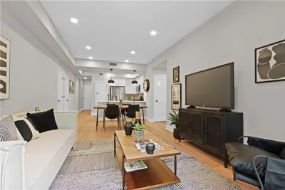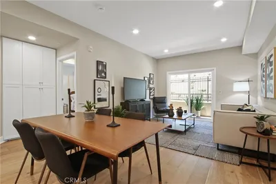 La Sevilla is a brand-new collection of 75 upscale single-level condominiums in the prestigious Rolling Hills Estates, seamlessly combining comfort, simplicity, and modern design. Plan G features an open concept living and dining area that flows effortlessly onto a private balcony, creating a perfect blend of indoor relaxation and outdoor enjoyment. The home showcases elegant finishes, including wide-plank hardwood flooring throughout, quartz countertops, a full tile backsplash, and a premium LG stainless-steel appliance package with a French-door refrigerator, built-in microwave, gas range with AirFry, and dishwasher. The spacious primary suite includes a luxurious bathroom with a glass-enclosed shower and bathtub, quartz countertop, designer porcelain tile, and stylish stainless-steel accents. Residents have access to a grand courtyard with inviting sitting areas and a fireplace, as well as a modern fitness center, remote-work lounge, community room, and a barbecue area with a firepit—ideal for gatherings and leisure. Situated on the scenic Palos Verdes Peninsula, La Sevilla offers the tranquility of a high-end neighborhood combined with exceptional walkability. Just steps away are Peninsula Center shops, the public library, grocery stores, coffee shops, and a variety of local restaurants. Additionally, the community is minutes from scenic hiking trails and the stunning beaches of Palos Verdes, making it easy to enjoy outdoor adventures and coastal beauty.