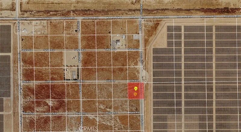 Great opportunity to own a 2.51-acre level corner parcel in the west Rosamond area. Located at the corner of Astoria Ave and Gobi Ave, this investment property offers good access from Astoria Ave and features flat topography, making it easier to explore future possibilities. Electricity poles are on Astoria Ave, adding to the property’s appeal. Zoned E(2 1/2) R, this parcel is well suited for buyers looking to invest in open land in a growing High Desert market. Property Highlights: APN: 359-091-08-00-3 ; Lot Size: 109,336 SF / 2.51 Acres ; Location: Astoria Ave + Gobi Ave, Rosamond, CA 93560 ; GPS: 34.858856, -118.353571; Topography: Flat / Level ; Access: Good access from Astoria Ave; Utilities: Electricity poles on Astoria Ave ;