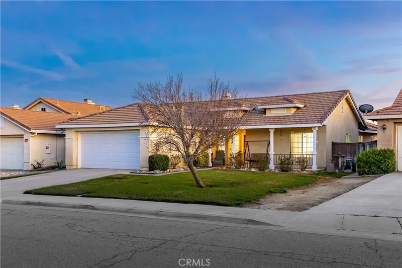 Beautiful single story home located in West Rosamond. This property has gorgeous curb appeal, featuring a landscaped front yard and a covered front porch. Inside you will find a spacious living room. The kitchen features black appliances, access to the garage and ample cabinet space. The dining room connects to the kitchen, which is perfect for entertaining. The dining room also features a fireplace and a sliding glass door leading to the rear yard. The primary bedroom is spacious, featuring double-door entry, a walk-in closet, and a regular closet, and an attached bathroom. The primary bathroom features a dual sink vanity and a beautiful tile shower. There are 3 additional bedrooms and a guest bathroom. The rear yard is landscaped with a covered patio. Lastly, there is a 2 car garage with a new insulated garage door, new opener & LED lighting. This house is a MUST see!