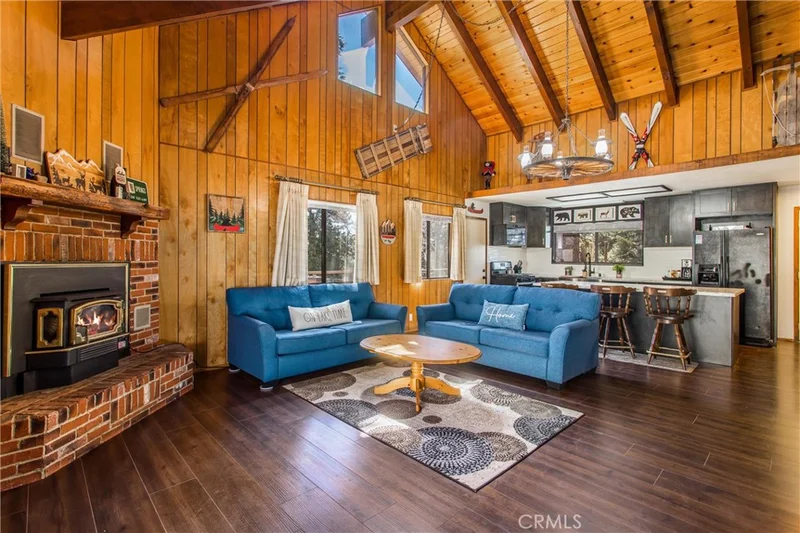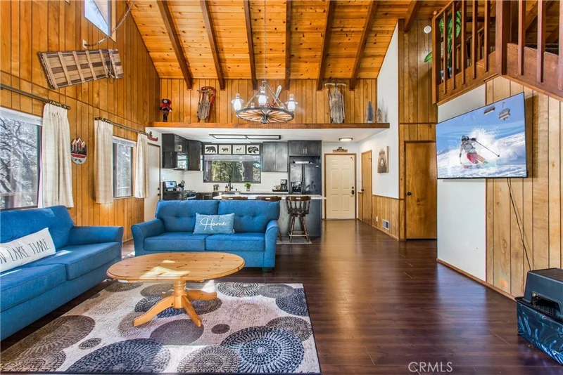Charming Updated Cabin in Running Springs – Fully Furnished with Short-Term Rental Permit! Come relax and unwind in this beautifully updated cabin in Southern California’s local ski destination, Running Springs. This residence seamlessly blends the original 1970s charm with modern upgrades. Step inside to an open floor plan featuring a classic A-frame vaulted ceiling and brand-new vinyl plank flooring. The remodeled kitchen boasts maple cabinetry, quartz countertops, new black stainless steel appliances, and a custom island with additional seating—perfect for entertaining. The main living area is bright and inviting, with large windows capturing serene forest views, a built-in fireplace, and direct access to the rear deck. Upstairs, an open loft offers extra sleeping space or a fun family retreat. The downstairs garage has been transformed into a bonus living area with a full bath and laundry. Enjoy outdoor living on the wrap-around deck, rebuilt with premium materials and craftsmanship, or soak in the private above-ground hot tub after a day of skiing or hiking. Additional updates include modernized bathrooms with new cabinetry, quartz countertops, and fixtures, as well as all-new plumbing, electrical, and furnace systems. Centrally located near popular ski resorts, Lake Arrowhead, and Big Bear, this home makes an ideal getaway and has a proven Airbnb rental history. Fully furnished and equipped with a short-term lodging permit, it’s turnkey and ready for your enjoyment or rental income.
