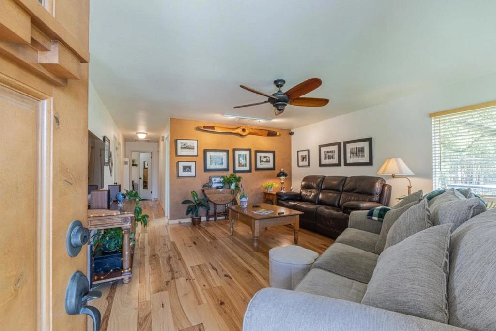 Once you walk through the door of this well maintained 3-bedroom 2 full bath property this home will check all the boxes on your country home search. Updated kitchen with stainless steel appliances & granite countertops. Beautifully remodeled bathrooms with high-end materials to include granite, stone, wood and tile all tastefully done. Ceiling fans, hickory flooring, double-pane windows, and ample closet space are found throughout. Outside is a workshop, artist studio, with cozy outside sitting areas, potential bonus space, a space that could house a chicken coop or once horse stall area, garden boxes with cover for your seasonal vegetables & flowers, mature landscaping with fruit trees for your jams and pies all on a very useable FLAT fenced acreage (approximate 1.293 acres). There is also room for your horses and goats. Entrance to back property has a solar gated entrance. All these amenities add to this properties charm as well as a great private location, but close to shopping & restaurants plus a safe access to HWY 101 for commuting. This country home is ideal for serenity, relaxation, entertaining and family living at its best. This country compound is definitely a must-see. Don't let this one slip away.