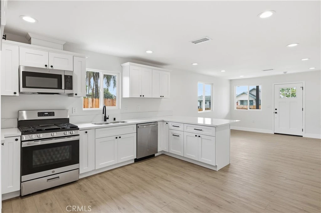 Welcome to Your Dream Home! This beautifully remodeled 3-bedroom, 2-bathroom residence offers the perfect blend of modern style, functionality, and long-term opportunity. Step inside to a bright open-concept layout, enhanced by fresh interior and exterior paint and luxurious vinyl plank flooring throughout, creating a clean and inviting atmosphere from the moment you walk in. The chef-inspired kitchen is a true focal point—featuring elegant shaker cabinetry, sleek quartz countertops, and stainless steel appliances—designed for both everyday living and effortless entertaining. Abundant natural light pours in through dual-pane windows, while both bathrooms have been fully remodeled with tasteful, modern finishes, offering a spa-like experience in your own home. Sitting on a generously sized lot, this property truly shines outdoors. The spacious backyard is perfect for hosting, relaxing, or creating your dream outdoor oasis. A standout feature of this home is the brand-new detached 2-car garage, offering incredible versatility—ideal for a future ADU, guest house, or additional income opportunity. Whether you're a homeowner looking for comfort and space or an investor seeking upside potential, this property checks all the boxes. Conveniently located in San Bernardino with access to nearby shopping, dining, and major freeways, this home offers both practicality and future value. Completely turnkey and move-in ready, this is a rare opportunity to own a thoughtfully upgraded home with built-in flexibility and income potential. Don’t miss your chance to make it yours!
