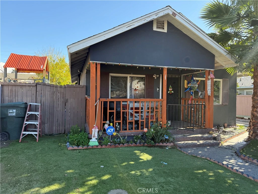 Charming single-story home featuring a covered front porch and fenced front yard. The interior offers a functional layout with a living area, kitchen with ample cabinetry and counter space, and a dedicated dining or breakfast area. The kitchen includes a double sink, dishwasher, and generous storage. The home also features a bathroom with vanity storage and natural light. Flooring throughout includes a mix of laminate and tile. The backyard provides mature trees, outdoor space, and potential for gardening or entertaining. This property offers an excellent opportunity for customization and improvement, making it ideal for buyers looking to add their personal touch or investors seeking value. Conveniently located near local amenities, shopping, and transportation.