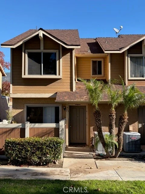 Step through the park at your front porch you will be greeted with this convenient 3 bed 2 bath condo at Silver Ridge community with access to pool and hot tub facilities. The condo unit is attached with two car garage. Living room and kitchen, and included washer dryer are on the first floor. Newly painted 3 Bedrooms and 2 bathrooms are on the second floor. This unit is located in building 13, with no neighbor unit on above or below. This property is close to Cal State San Bernardino.