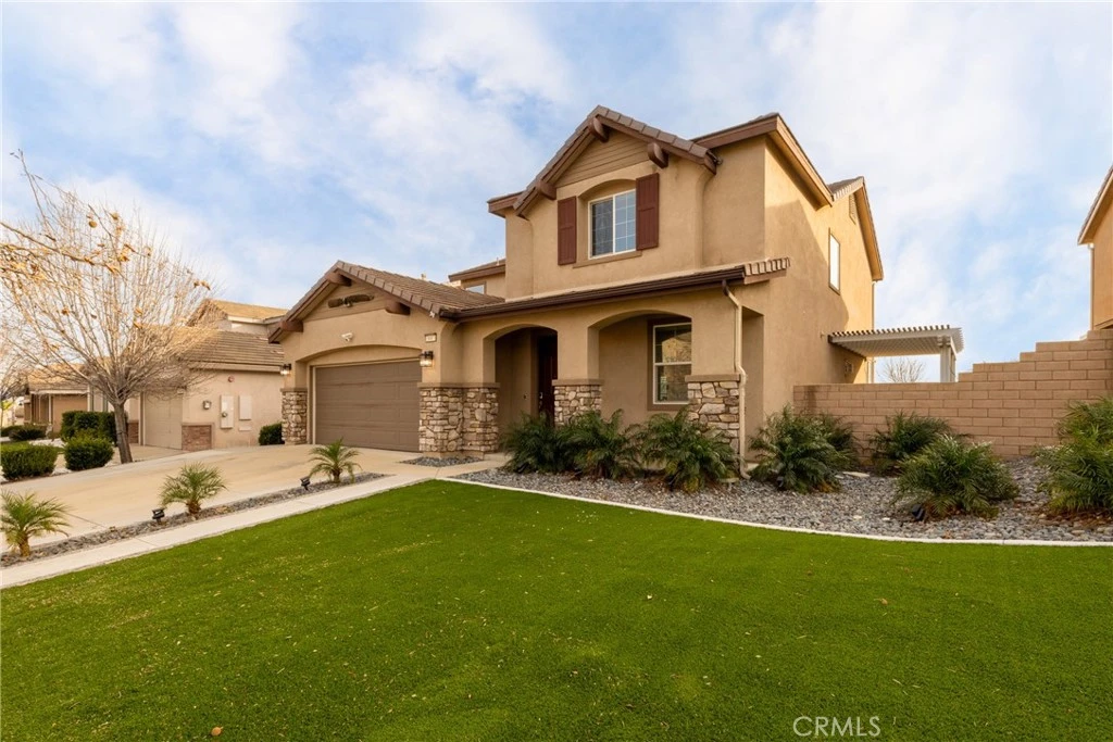 Welcome to the Rosena Ranch Community. This is a well manicured and gorgeous home just waiting for you and your family. The first floor has 1 bedroom and full bathroom. You also have a very large open floor plan. Large kitchen island and great area for entertaining. It also has a loft upstairs with 3 bedrooms and 2 bathrooms.Gorgeous night views of the city at night. Yards are complete with Astroturf and you have no other homes behind you blocking your views. Backyard covering is done with Alumawood. This home comes with a paid off solar system. You are close to shopping and the Freeway.