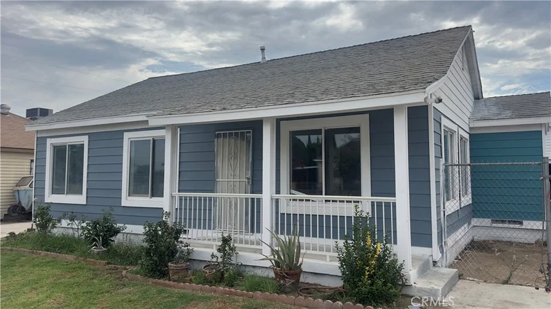 One floor, storybook cottage has been updated and offers both comfortable living and strong investment potential—ideal for a first-time buyer or as a rental property addition. Thoughtful updates include new tile throughout, refreshed bathroom, fans in bedrooms, new closet doors, and new microwave and stove. House has been freshly painted inside and out - move-in ready! Home has newer a/c and dual-pane windows. The inviting front portico leads into a bright interior with built-in cabinetry and a functional layout. The open kitchen has freshly painted wood cabinets and flows into the dining area, which offers direct access to the backyard—making everyday living and entertaining easy. The oversized, fully fenced backyard provides privacy and usable space, complete with a covered patio and a mature, fruit-bearing citrus tree. A detached two-car garage offers ample storage and potential to convert to an additional dwelling space - ADU - while a wide side gate allows for RV or additional vehicle access. A brand-new washer and dryer will be installed at closing. Although the property has a San Bernardino address, it is located within the City of Highland. Situated in an established neighborhood with convenient freeway access, this home presents a versatile opportunity for young families or investors.
