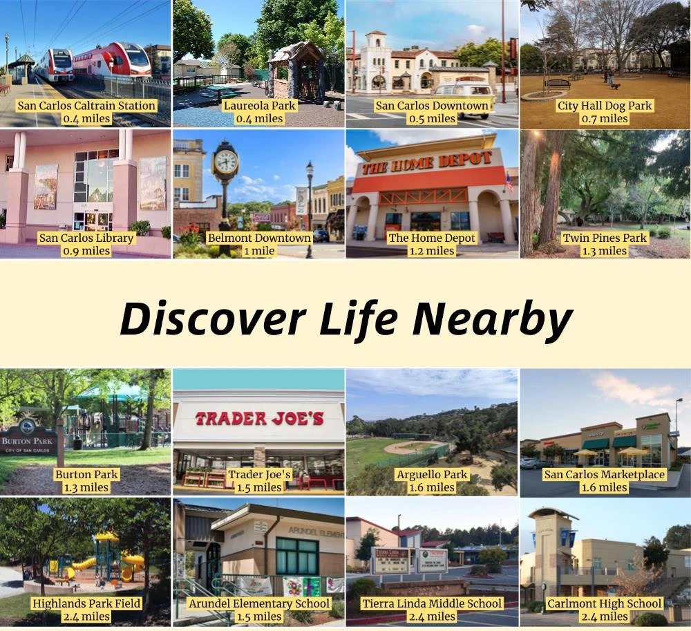 Located in a top-rated school district, including Carlmont High (buyer to verify), this beautifully reimagined move-in ready 3-bedroom, 1-bath home in the heart of San Carlos combines modern upgrades with effortless living. Engineered hardwood floors, vaulted ceilings, and recessed lighting brighten the open-concept living and dining areas, while a cozy fireplace adds warmth. The chef-inspired kitchen features premium stainless-steel appliances, gas range with vented hood, Alice Shaker cabinetry, marble-veined backsplash, and Quartz countertops with sun-filled windows. Three generous bedrooms share a spa-like bath with skylight, marble-style tile, soaking tub with Hansgrohe rainfall shower, and modern vanity. Step outside to a covered patio and expansive backyard with room to entertain, relax, or potential for a future addition. A versatile bonus shed provides space for a home gym, office, or studio. Just minutes to downtown San Carlos, parks, Caltrain, and Hwy 101. Perfect for first-time buyers or investors seeking stable income, this turnkey home blends style, comfort, and lifestyle convenience.