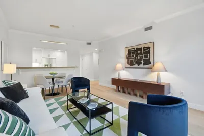 Perfectly positioned in one of the most desirable pockets of downtown San Carlos, this beautifully remodeled 2BR/2BA Northwest-facing residence offers exceptional privacy with no shared walls and tranquil views of Pacific Hacienda's Mediterranean-inspired courtyard and historic fountain. Just one block from the vibrant dining and shopping of Laurel Street and moments to CalTrain, this sophisticated urban retreat provides luxury, convenience, and everyday livability. Inside, enjoy European oak hardwood floors, tall ceilings, floor-to-ceiling living room windows, premium window shades, and a bright open great room with a push-button fireplace and a private balcony shared with the spacious primary suite. The chefs kitchen features high-end Columbia cabinetry with custom storage solutions, under-cabinet lighting, and newer appliances. Both bathrooms are tastefully updated with modern finishes and LED lighting, while both bedrooms feature hardwood flooring for upscale living. Additional highlights include in-unit laundry, central HVAC, two deeded parking spaces, a deeded storage unit, secure bike storage, 24-hour secured access, and a well-equipped fitness center. A rare combination of walkability, comfort, security & views on the second level plus privacy in the heart of San Carlos.