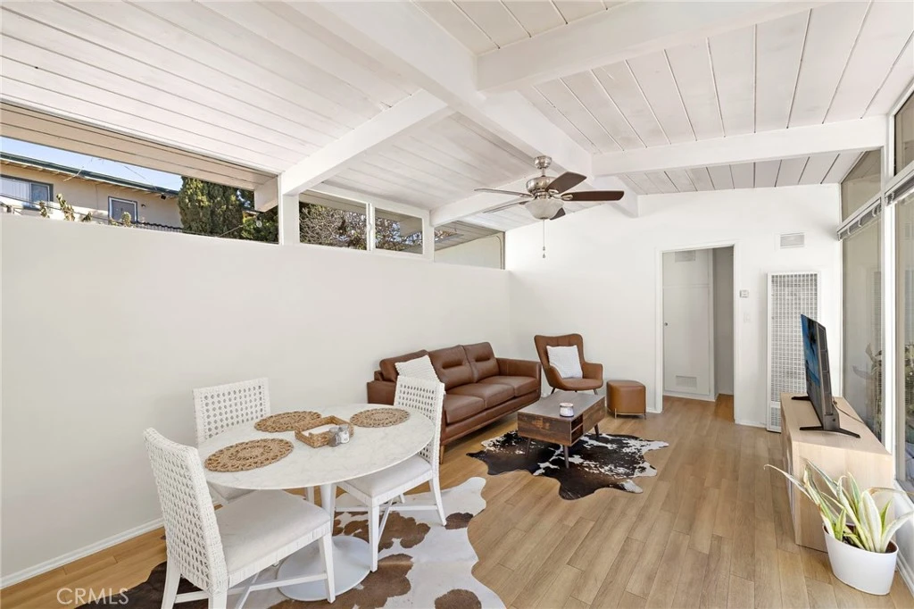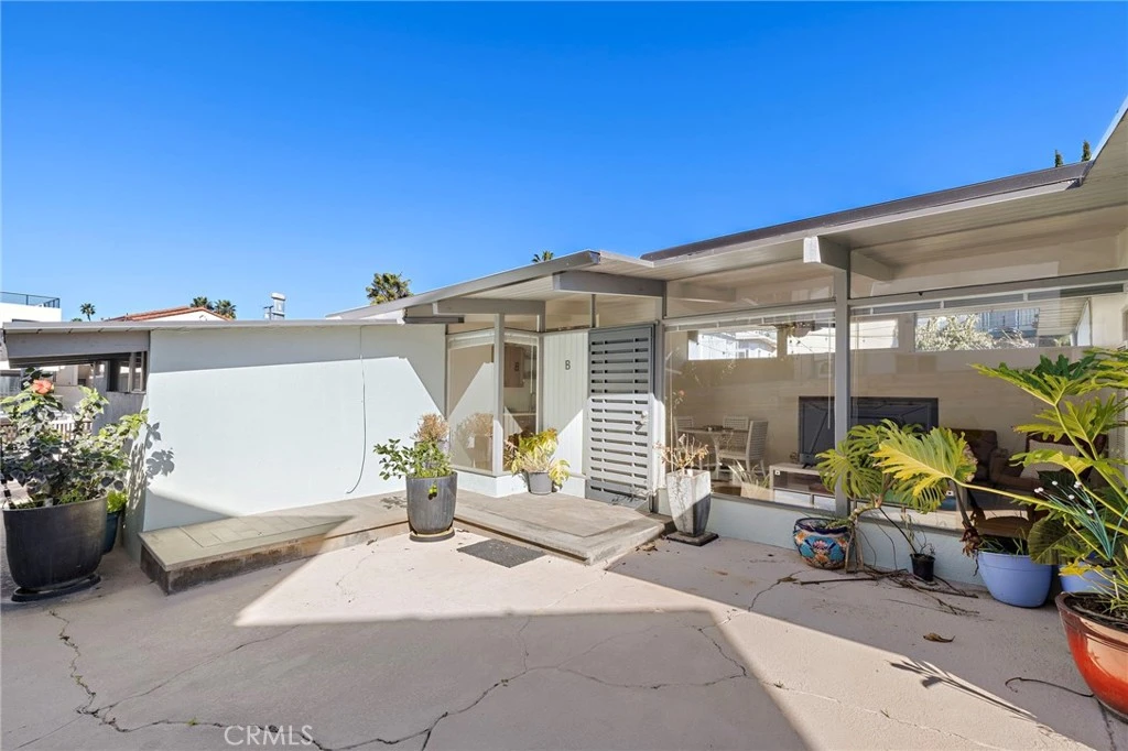 Designed by famed architect Chris Abel, this beautifully maintained mid-century modern beach triplex offers a rare blend of architectural character and prime coastal location. Apartment B features a bright and open two-bedroom, one-bath floor plan with vaulted ceilings and dramatic floor-to-ceiling windows that flood the space with natural light. Thoughtful design details highlight the home’s timeless style while creating an inviting, airy atmosphere. Residents enjoy access to a spacious shared community deck with peek-a-boo ocean views—perfect for relaxing or entertaining—as well as a community laundry room, soft water filtration system, and a private one-car garage at street level. Ideally located within walking distance to the beach, the San Clemente Beach Trail, local shops, and dining, this exceptional residence delivers the best of Southern California coastal living.