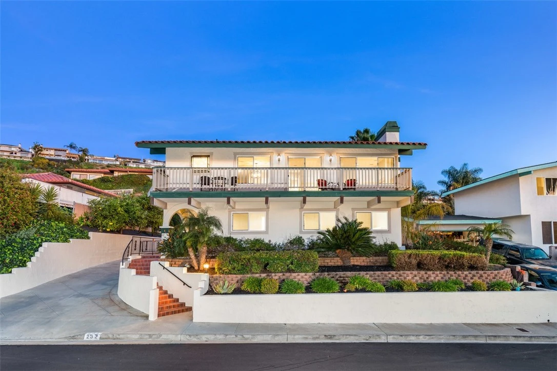 DREAM HOME! Forever sunsets and panoramic ocean views await you! This spectacular, custom 4 bedroom + 2.5 bath home on "The Hill" with incredible Catalina Island, San Clemente Island, and Dana Point Harbor ocean views will take your breath away! Located on a very, very rare 8,540 sqft. lot, this home has been meticulously maintained since the day it was built! Designed in the traditional Spanish architecture of the true San Clemente vision, this home's featured reverse floor plan maximizes the pristine ocean and hillside views! Upgrades include complete newer interior paint, Pella windows, scraped ceilings, recessed LED lighting, newer stainless steel appliances, newer carpeting in 2 downstairs bedrooms, 2 fireplaces, cute lighting fixtures, newer outlets & switches, and newer door & cabinet hardware throughout! You will fall in love with the professional front & rear landscaping which features a gated driveway entrance + true RV/Boat access, amazing pavered hardscape system, picturesque backyard w/lemon, lime, orange, grapefruit, and plum trees + a turf lawn and top-of-the-line spa jacuzzi w/wi-fi sound system & multi-light color control! Enjoy balmy afternoons under the huge covered patio w/Spanish tile flooring! Enjoy an amazing sunset every night from your huge front balcony! Oversized garage w/epoxy coating & loads of storage! Outdoor & garage sound system included! Walk, bike, or drive to charming Avenida Del Mar, The Pier & Beach in 3 minutes!