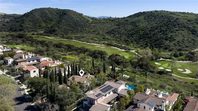Set behind the gates of Careyes on one of its largest and most coveted 1/3-acre lots, this Italian Riviera–inspired estate unfolds like a private European retreat tucked quietly into the hills of San Clemente. From the moment you arrive, there is a shift. The architecture feels storied and intentional, rooted in another era. Soaring wood-beamed ceilings rise above Richard Marshall hardwood floors with intricate mosaic inlays, while wrought iron detailing, arched passages, and precast stone fireplaces create depth and romance throughout. The expansive floor plan offers six bedrooms, five full baths and two half baths, including two detached casitas. The downstairs casita is appointed with a high-end TV surround sound system, ideal for theater-style entertaining, while the upper casita offers its own private living space for guests or multigenerational flexibility. Formal and informal spaces flow into a gourmet kitchen with professional-grade appliances and granite countertops, allowing the home to live as beautifully as it entertains. Interior rooms and garden areas were pre-wired for high-end sound, creating a seamless indoor-outdoor experience. Upstairs, the primary suite serves as a private sanctuary, opening to a double-doored balcony with peek-a-boo ocean views beyond the rolling fairways of the Fred Couples–designed championship golf course and adjacent natural preserve. Yet it is the grounds that truly set this property apart. The backyard unfolds in terraces of aged brick, a rare architectural landscape that evokes the romance of the Italian coast. Imported Italian planters frame the estate, while mature landscaping forms a living wall of privacy, enclosing the property in quiet seclusion. Strategically placed water features provide a constant, soothing soundtrack as birds move through the trees throughout the day. At the heart of the garden, a resort-caliber pool shimmers with imported Walker Zanger Italian tile, paired with a heated spa that spills gently into the pool in a continuous cascade. Sunlight moves across brick and water as the day unfolds, creating an atmosphere that is immersive, transportive, and remarkably serene. Every pathway, hedge, and terrace has been considered with intention. The outdoor experience is not an accessory to the home. It is its soul.
