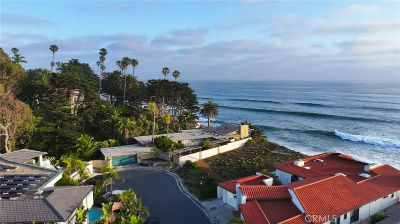Poised at the end of a private, ocean front cul de sac in the coveted Cyprus Shores community, this residence looks straight out to Cottons Point with unobstructed views all the way up the coastline to Dana Point and out to Catalina & San Clemente Islands. The iconic house holds a slice of history, especially for surf culture, as the previous residence of the late John Severson of Surfer Magazine, and for it’s close proximity of the Nixon Estate, La Casa Pacifica. The rare lot is the largest on the bluff in the neighborhood boasting over 14,700 sq.ft. The mid-century beach house features authentic post and beam ceilings throughout, travertine floors, two outdoor showers, and five bedrooms including a secluded guest quarters. The gourmet chef’s Kitchen is complete with every imaginable appliance from a SubZero refrigerator to a Dynasty oven & gas stove top with griddle, two sinks, a large island, wine fridge, and extensive storage. Step up to the Living Room with a grand fireplace and windows looking over the Pacific Ocean. The Master Retreat is tucked into the side of the cliff and exudes the feeling of being on a boat staring at the waves. The property has over 1,500 sq.ft of wrap around deck with an in ground jacuzzi and room to entertain a plethora of guests. Walk down the private steps to the renown South Gate/Cottons Point beach and just minutes up the beach to the world class surfing at Trestles. Truly a one of kind gem in the beautiful town of San Clemente.