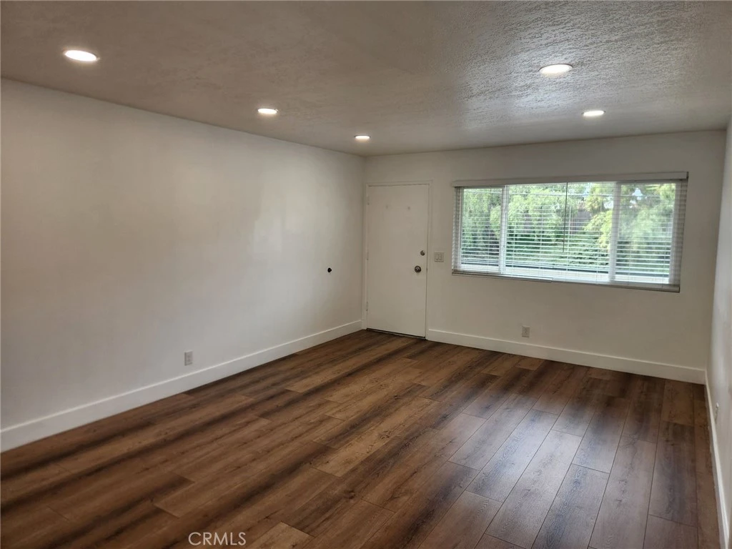 Beautifully recently remodeled upstairs unit w/ 2bdrm + 1ba. Remodeled kitchen with quartz counters and white shaker cabinets with black hardware. Dual sink vanity in the bathroom and recently reglazed tub. LVT floors throughout and fresh paint. Both bedrooms have spacious closets and ceiling fans. Includes 1 garage space in shared garage. Community laundry. Great location - close to beach.