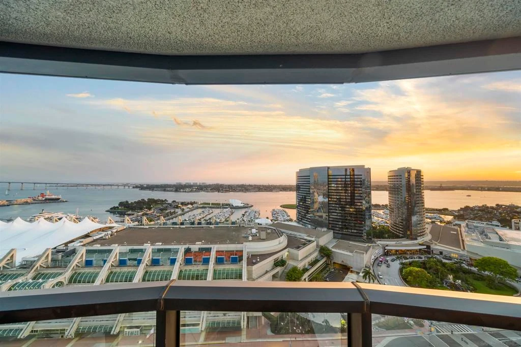 Welcome to Harbor Club Residence 2405, featuring the iconic “bubble” floor plan and positioned high on the 24th floor. This 2-bedroom, 2-bath residence offers breathtaking, unobstructed views from every room, spanning the bay, Coronado, the Coronado Bridge, and the Downtown skyline. Set on the true front row of Downtown’s waterfront, this residence offers one of the closest possible positions to the bay, with no residential development permitted south of Harbor Drive. The signature curved “bubble” layout maximizes glass and view exposure, creating a bright, dramatic living experience throughout. The home has just been refreshed with new flooring, fresh paint, and a new dishwasher, along with additional upgrades completed over the years. The spacious primary suite features a custom walk-in closet, while both bedrooms enjoy incredible panoramic views. An exclusive-use EV charger was also installed at the unit's parking spaces. Harbor Club has long been one of Downtown’s most desirable addresses, known for its prime location and protected, unobstructed views. Residents enjoy a full-service luxury lifestyle with amenities that include a rooftop pool and spa, clubhouse, fitness center, sauna, 24-hour concierge and doorman, and a private library and meeting space. A rare opportunity to own one of Harbor Club’s most sought-after floor plans in a premier waterfront setting.