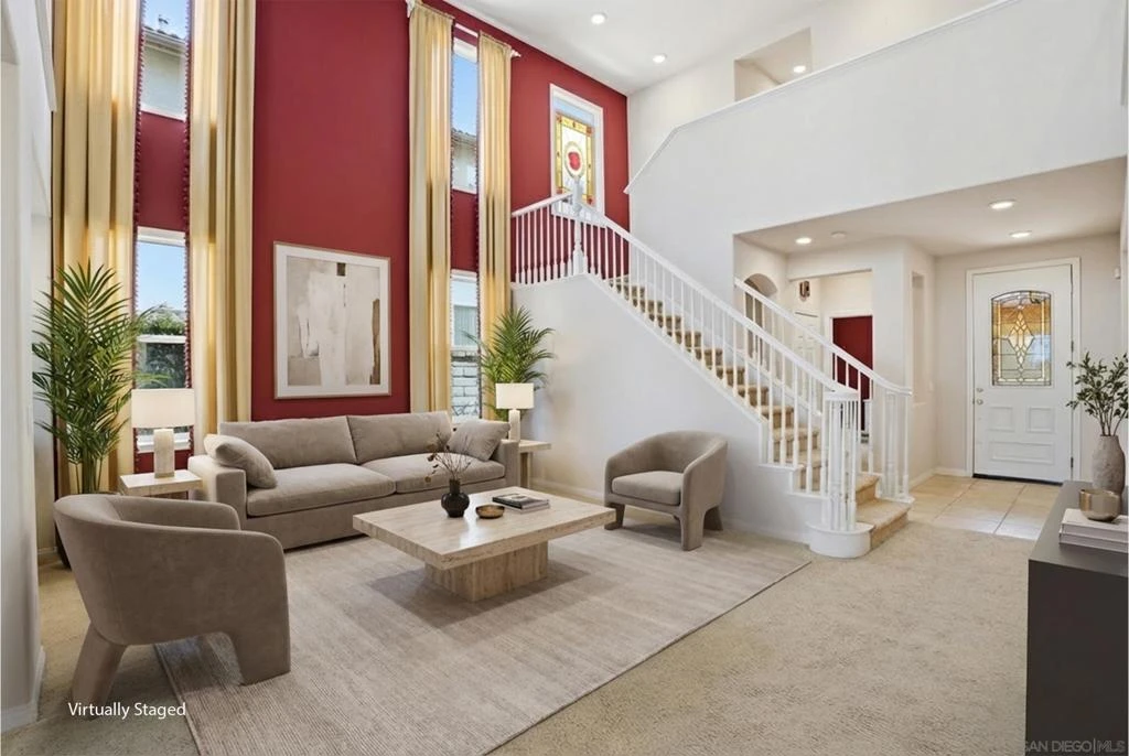 Experience panoramic views that truly set this 6 bedroom home apart - spanning the ocean, Downtown San Diego skyline, and the iconic Coronado Bridge - from the main living areas, private balcony, and beautifully designed backyard. This is the kind of view you have to see in person to fully appreciate. Offered for the first time ever, this impeccably maintained residence features 5 bedrooms, a spacious loft, a full bar, and 3 bathrooms, with a highly desirable first-floor bedroom and full bath - perfect for guests or multi-generational living. The expansive primary suite is a true retreat, complete with a large spa-like bathroom, dual walk-in closets, and a private balcony showcasing some of the best views in all of San Diego. Additional highlights include soaring ceilings, abundant natural light, owned solar, a 3-car garage, quartz countertops, a cozy fireplace, and a dedicated laundry room. Step outside to a generously sized, low-maintenance backyard featuring a firepit, ideal for entertaining or simply unwinding while taking in the stunning scenery. Homes with views like this rarely come to market, don’t miss your opportunity to own one of San Diego’s most captivating properties.
