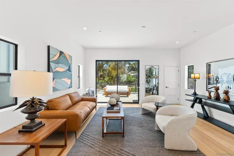Modern minimalist luxury in the heart of Uptown San Diego. Located in the highly sought-after Marston Hills neighborhood, this newly built residence blends refined contemporary design with a serene, tree-lined greenbelt setting. A thoughtful and flexible floor plan offers privacy and versatility, featuring a luxurious primary suite, two oversized ensuite bedrooms, two half baths, and a dedicated flex/office space with direct access to a sun-filled rooftop deck showcasing sweeping treetop views. Soaring ceilings, wide-plank oak flooring, and designer-selected finishes create a warm, light-filled interior. The chef’s kitchen is the centerpiece of the home, complete with Viking appliances, a quartz waterfall island, and an open-concept layout ideal for both entertaining and everyday living. The primary suite serves as a peaceful retreat with a spa-inspired bath, generous closet space, and a private balcony overlooking mature trees—offering rare tranquility in an urban setting. Outdoor living includes a private fenced yard, two-car covered port garage, and the calming backdrop of nature just beyond the property line. Ideally located just minutes from Balboa Park, Hillcrest shopping and dining, Downtown San Diego, and San Diego International Airport. With no HOA and flexible living options, this home delivers a rare balance of modern luxury, natural surroundings, and urban convenience.