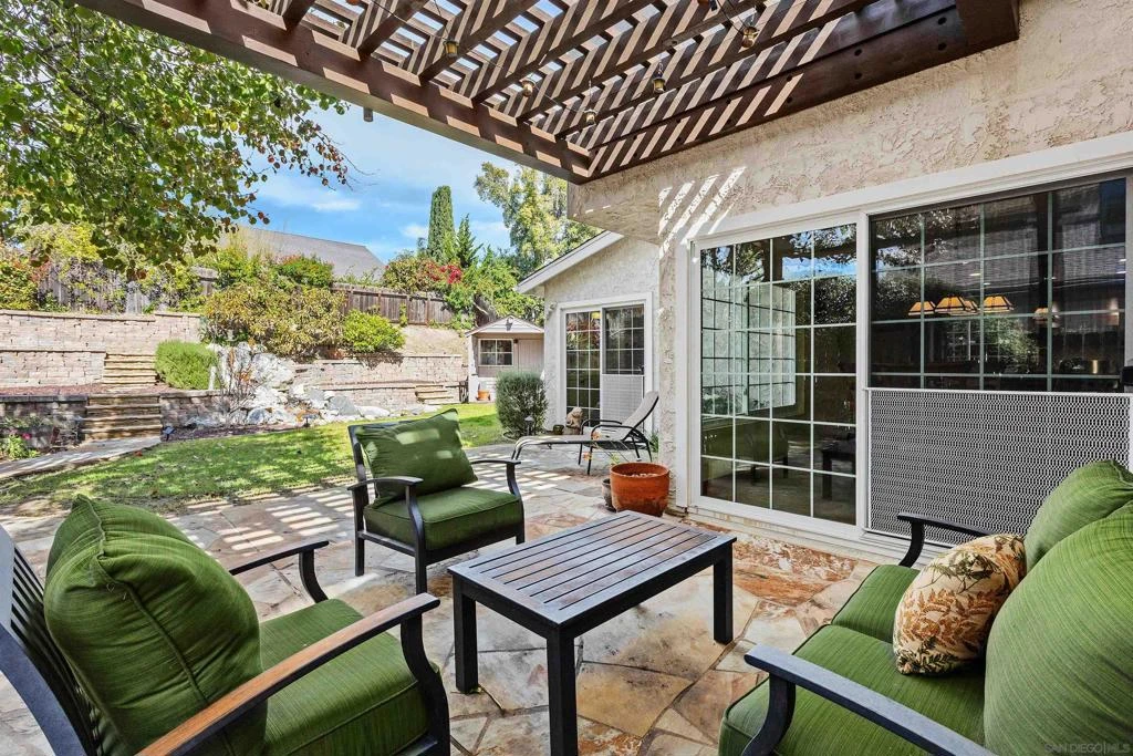 Welcome to this beautifully cared-for Tierrasanta home offering 4 bedrooms, 2.5 baths, and 1,862 square feet of well designed living space. Situated on a 5,700 sq ft lot with no HOA, this home reflects years of careful infrastructure investment and energy-conscious improvements. Energy upgrades include an owned 8kW roof-mounted solar system (fully paid), R-30 blown-in attic insulation, ember- and pest-resistant venting, LED lighting throughout, and low-water irrigation in the renovated front yard. Major system improvements include a replaced natural gas supply line with code-compliant meter relocation, updated water heater with seismic strapping, upgraded fireplace gas supply, EV-ready 240V garage outlet, water softener and reverse osmosis systems. Wood flooring runs throughout the home, creating a cohesive and warm interior aesthetic. The kitchen features stainless steel appliances, Kohler pull-down faucet, upgraded disposal, and enhanced LED lighting. The adjacent family room includes a bright bay window space off the kitchen, offering flexibility for a playroom, reading nook, home office or exercise area. Upstairs offers stain-resistant DreamWeaver carpeting and updated bath ventilation. The backyard provides a private setting with stone patio, pergola, terraced landscaping, and tranquil water feature. Located centrally Tierrasanta, known for convenient access to multiple freeways and proximity to Mission Trails Regional Park. Major system improvements include a replaced natural gas supply line with code-compliant meter relocation, updated water heater with seismic strapping, upgraded fireplace gas supply, EV-ready 240V garage outlet, water softener and reverse osmosis systems. Wood flooring runs throughout the home, creating a cohesive and warm interior aesthetic. The kitchen features stainless steel appliances, Kohler pull-down faucet, upgraded disposal, and enhanced LED lighting. The adjacent family room includes a bright bay window space off the kitchen, offering flexibility for a playroom, reading nook, home office or exercise area. Upstairs offers stain-resistant DreamWeaver carpeting and updated bath ventilation. The backyard provides a private setting with stone patio, pergola, terraced landscaping, and tranquil water feature. Located centrally Tierrasanta, known for convenient access to multiple freeways and proximity to Mission Trails Regional Park.