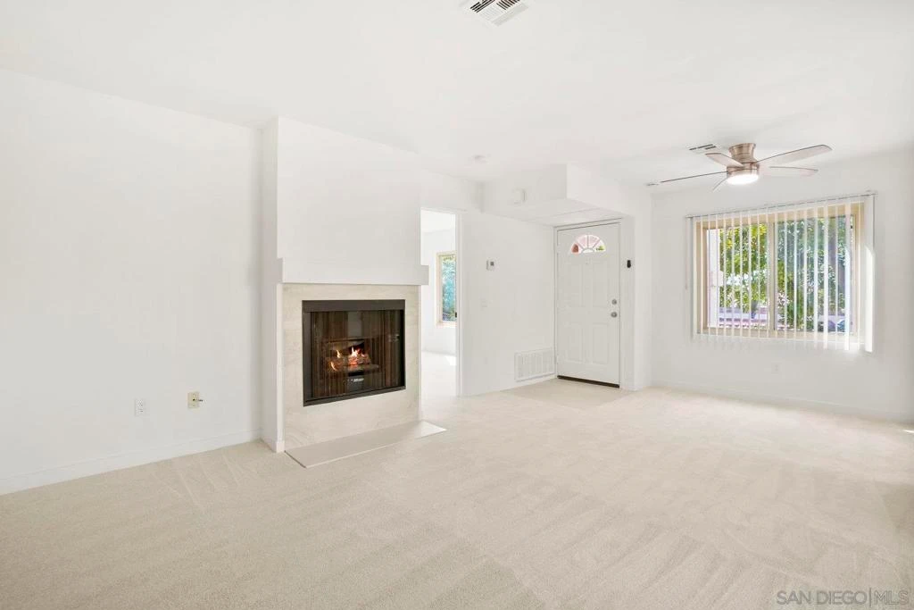 Welcome to this beautifully updated 1-bedroom, 1-bathroom condo with 598 sq. ft. of modern living space. Every detail has been thoughtfully upgraded, including a brand-new kitchen with sleek cabinetry, quartz countertops, designer tile backsplash, and stainless steel appliances. The open living area features large-format tile at the entryway, a stunning new fireplace surround, and dual-paned windows that fill the home with natural light. The spacious bedroom connects to a fully renovated bathroom with a new vanity, tile, tub, and fixtures. Additional highlights include in-unit washer/dryer, newer HVAC system, private balcony, ample storage, and a dedicated covered parking space. Situated on the top floor for added privacy, this home combines comfort and convenience in one of San Diego’s most desirable locations. Enjoy being minutes away from endless shopping and dining in Mira Mesa, close to major freeways, UCSD, and the tech hub of San Diego. Whether you’re a first-time buyer, downsizing, or looking for an investment, this turnkey condo offers the perfect blend of style and location.
