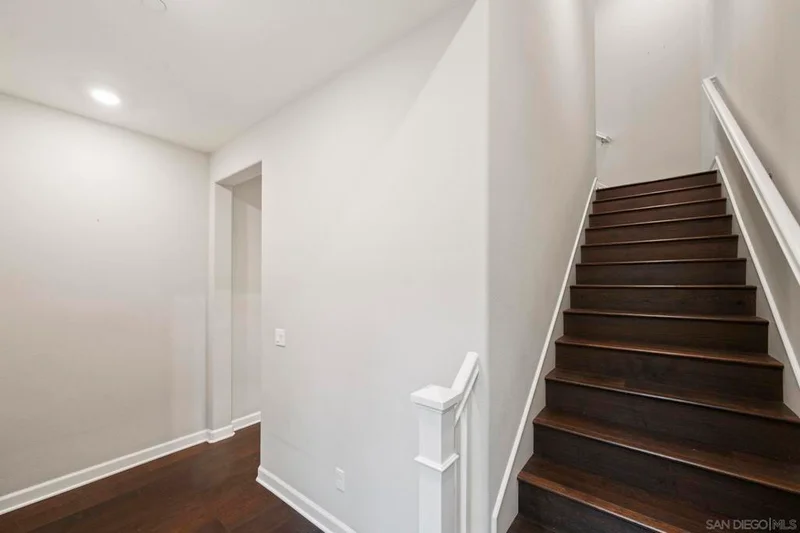 Beautiful 2021-Built End Unit Townhome in the Sought-After Promenade at Pacific Village – No Mello Roos! Welcome to this stunning three-level corner home where modern design meets effortless everyday living. Bathed in natural light from extra windows, this end unit townhome has 200 sq ft more living space than interior units. Featuring 9-foot ceilings and an open-concept living space, the heart of the home is perfect for gathering, relaxing, and entertaining. The modern kitchen boasts quartz countertops, a large island, pantry closet, and generous counter space — blending functionality with style. Step outside to enjoy your morning coffee on the charming front patio or unwind on your balcony on the second level, both ideal for fresh air and our Southern California sunshine. Smart and sustainable living are built right in, with a Solar Power Purchase Agreement (PPA) to help keep energy costs low and a whole-home water softener system for enhanced comfort and efficiency. Thoughtful details include a bedroom and full bathroom on the entry level, ideal for guests or a home office, and a dedicated laundry room for added convenience. Upstairs on the third level, the primary suite offers a peaceful retreat with a walk-in closet and a beautifully finished bathroom. The Promenade at Pacific Village offers resort-style amenities — a sparkling pool, playground, BBQ and picnic areas, and several dog parks. With no Mello Roos, easy access to fwys, shopping, dining, and top-rated Poway Unified schools, this home delivers! Come and see for yourself!