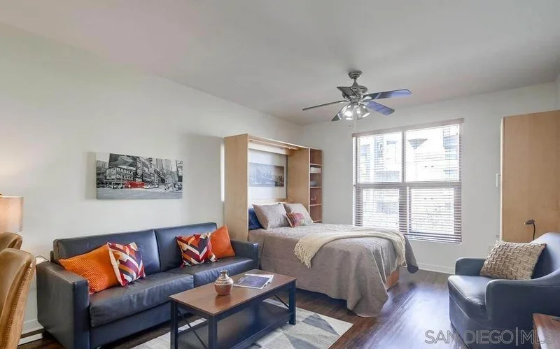 Step right into stylish East Village living fully FURNISHED and ready for you to enjoy today! Just bring your suitcase and settle into this spacious studio with soaring ceilings, city views, a comfy bed plus sleeper sofa, 1 bath, 1 parking space, and storage. The updated kitchen shines with cherry cabinets, granite counters, and stainless-steel appliances. Relax in your quiet retreat or take advantage of top-notch community amenities including a fitness center, BBQ area, community room, and 24/7 security. Outside your door, you'll find everything walkable award-winning dining, cozy cafes, trendy boutiques, live entertainment, the Little Italy Farmer's Market, Waterfront Park, Petco Park, Balboa Park, Seaport Village, and more. Even the train, trolley, and airport are just minutes away!