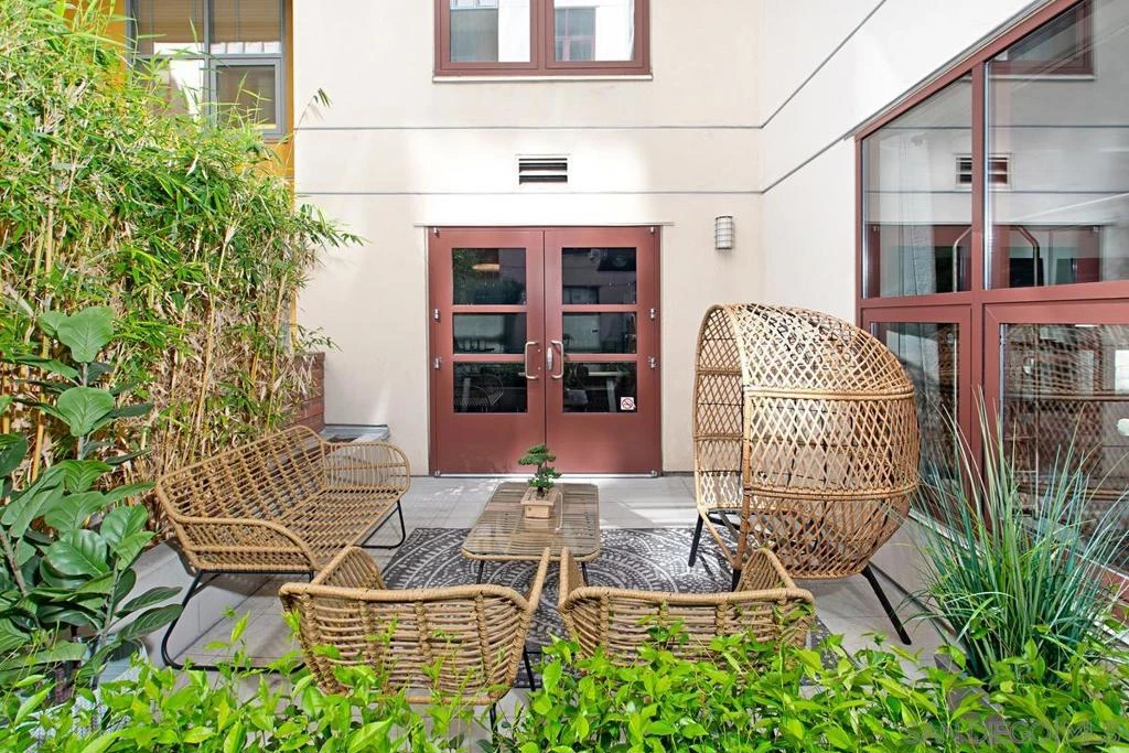 Welcome to The Metrome downtown city living with exceptional blend of modern design and convenient amenities. Whether you’re searching for a smart investment or the perfect place to call home beautifully appointed space. With a desirable southern exposure. Bright living space to include built-in window bench, bookshelves by the large window facing J street with newer window shade treatments and crown moldings. The chef's kitchen is a culinary dream, featuring a breakfast bar, and an array of stainless steel and Energy Star appliances. The open kitchen design flows seamlessly into the living area, perfect for entertaining or enjoying a cozy night in. Retreat to the bathroom, where you'll find a luxurious double sink, granite accents, and a soaking tub, providing a spa-like experience. Step outside to enjoy the beautifully landscaped common courtyard, garden, perfect for relaxation and social gatherings. The building boasts a range of amenities, including a club house, fitness center, recently renovated resident's lounge, and a common media/recreation room plus a Zen garden! For your peace of mind, the property features an intercom system, security gate, and security patrol.Parking is a breeze with underground gated and TWO assigned parking spaces in the covered garage with storage area, and bike storage. Central heating a/c ensure year-round comfort, while the laundry is in the unit for added convenience. Excellent urban living superbly located two blocks from Petco Park, restaurants, coffee houses, boutiques, and more. An easy walk to the embarcadero and seaport village to attend Symphony events at the new Rady Shell, and a lot more downtown festivities. LOW HOA Don't miss the opportunity to own this incredible condo in one of San Diego's most coveted locations. Beautifully landscaped common courtyard, garden, perfect for relaxation and social gatherings. The building boasts a range of amenities,including a club house, fitness center, recently renovated resident's lounge, and a common media/recreation room plus a Zen garden! For your peace of mind, the property features an intercom system, security gate, and security patrol.