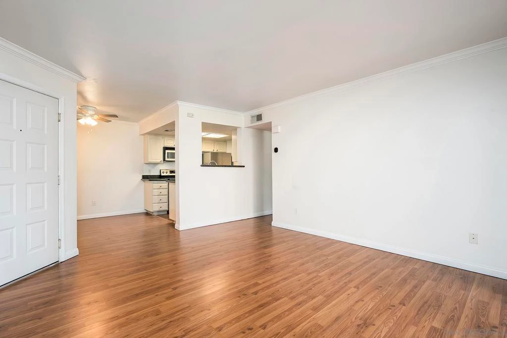 Welcome to resort-style living in the highly desirable Il Palio community! This move-in ready 1-bedroom, 1-bath interior unit offers a peaceful setting away from main roads while still being conveniently located near the pool and tennis courts. Inside, you’ll find laminate wood flooring throughout, fresh interior paint, and a bright, open layout. The upgraded kitchen features granite countertops, newer cabinetry, and all appliances included—making this home truly turnkey. Additional improvements include a newer HVAC system and water heater for added comfort and efficiency. Enjoy the rare convenience of a walk-in pantry with a full-size, side-by-side washer and dryer. The spacious bedroom and living areas provide a comfortable retreat, ideal for both everyday living and entertaining. Il Palio offers an impressive array of resort-style amenities including a pool, spa, sauna, fitness center, clubhouse, tennis and racquetball courts, and BBQ areas. Located within the award-winning Poway Unified School District, this home also includes assigned covered parking and guest parking with permit. A perfect opportunity for first-time buyers, investors, or anyone seeking low-maintenance living in a prime CMR/Rancho Bernardo location!