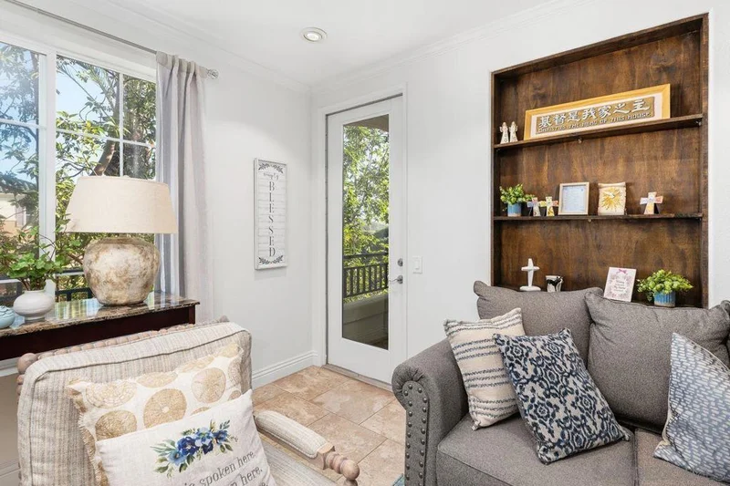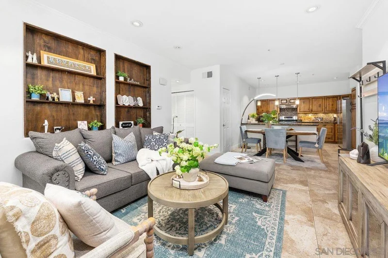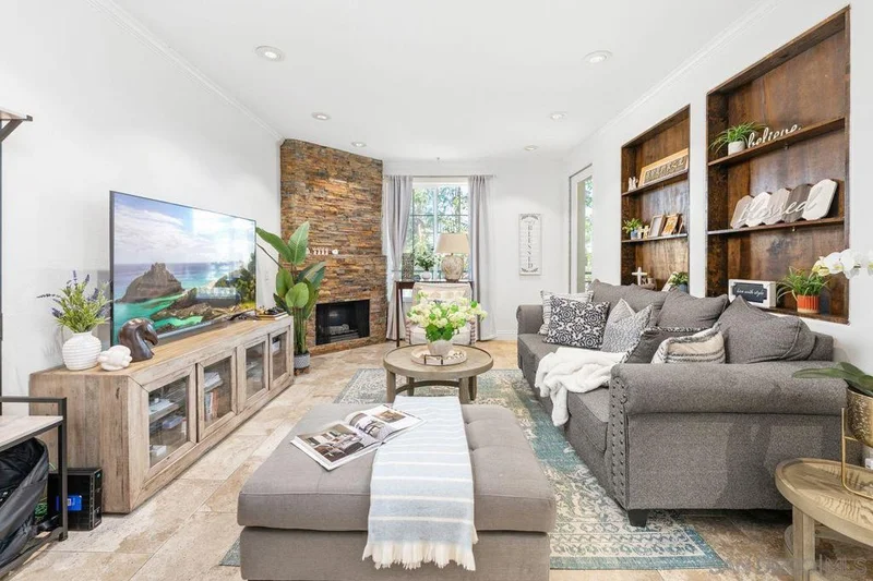 Welcome home to this beautifully upgraded two bedroom plus private den/office corner residence in the gated community of The Heights, thoughtfully designed for seeking comfort, convenience, and access to top tier schools. Located in one of San Diego’s most desirable school districts, this home offers the rare advantage of having the elementary, middle, and high schools just steps away. Morning drop offs become easy and after school activities are effortlessly accessible. Inside, the home is filled with natural light throughout the day, creating a warm and uplifting atmosphere. As a corner unit, you will enjoy added privacy along with peaceful tree views from every window. The flexible third room offers the perfect space for a home office, study area, playroom, or guest room. The kitchen is both stylish and functional, featuring Brazilian granite countertops with elegant pendant lighting, stainless steel appliances including a newer refrigerator, and a Spanish stone backsplash that extends to the fireplace. Recessed LED dimmer lighting throughout, interior designer paint, and flooring with no carpet deliver a clean and modern feel that is easy to maintain. Central HVAC ensures year round comfort. The Heights offers resort style amenities where you will enjoy a pool, spa, clubhouse, and fitness center. The HOA covers water and trash. Parking is convenient with a private garage plus an additional assigned space nearby. Enjoy close proximity to shopping, groceries, and restaurants in One Paseo and Del Mar Highlands and Carmel Valley Recreation Center and library nearby. Just minutes to I-805, I-5, and 56 freeway and the beautiful beaches of Del Mar/Torrey Pines. A rare opportunity to own a bright and private corner residence in Carmel Valley, where top rated schools, inviting surroundings, and everyday convenience come together to create the ideal lifestyle.