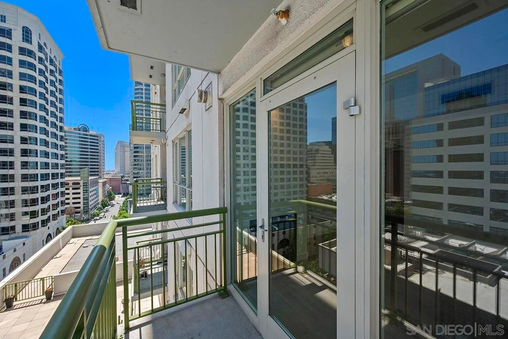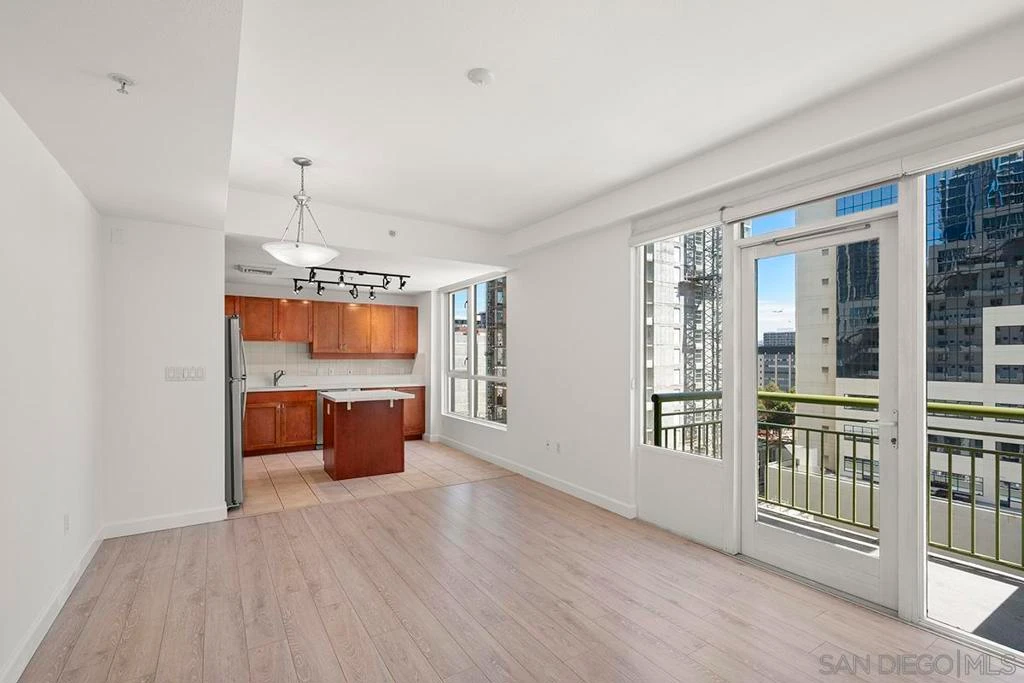 This 12th floor Treo residence offers Downtown San Diego skyline views from every room! Modern LVP flooring runs through the open living area and bedroom. Floor-to-ceiling windows flood the condo with natural light controlled by chic Hunter Douglas silhouette shades. The kitchen showcases warm wood cabinetry, quartz counters and center island, a full suite of upgraded stainless appliances with gas range, built-in microwave, and dishwasher - all under vivid lighting. The bedroom offers two closets, one with a custom organization system, plus a bathroom with a quartz vanity and combo shower/tub. Other features include a private balcony, fresh paint throughout, front-load washer and dryer, gas fireplace, RARE private storage in a temperature-controlled room, and a secured parking space on the first floor. Treo sits at the center of it all: walkable to the waterfront, Little Italy, the Gaslamp, and everything that makes downtown San Diego worth living in. Great building amenities including pool, hot tub, gym, BBQs, community rooms, and staffed lobby with LOW HOA dues. Long regarded as one of the best values in Downtown San Diego, the Treo HOA is exceptionally well managed, keeping dues low while maintaining a high level of building services and amenities. Enjoy a heated pool and spa, fitness center, multiple recreation and meeting rooms, barbecues and peaceful courtyard, plus security and concierge services. The lobby, hallways, and amenities have all been recently refreshed to foster a warm contemporary feel. Walk to the multitude of eateries and shops in Little Italy or Portside Pier, or take a slightly longer stroll to Seaport Village in the Marina District or the bustling Gaslamp Quarter. Treo is both FHA and VA approved.