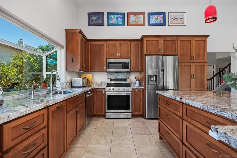 Hot off the press! All bathrooms completely remodeled with no expense spared & brand new carpet on stairs & in hall. Rare opportunity in The Heights! Located on a quiet cul-de-sac, this expanded and updated Plan 3 home sits on an all flat 10,638 SF lot. The Chef's dream kitchen-remodeled in 2018-opens to the family room and was also expanded and extensively remodeled with the addition of an oversized island w/storage & wine cooler, stainless appliances, custom cabinetry, tech/study/work station or breakfast nook and raised ceiling. Multiple upgrades including windows, sliding door to yard, flooring, electrical, Carrier HVAC in 2023, Solar, Pool safety net & EV charger in 3 car garage. Primary suite with retreat & cozy fireplace is conveniently located on the entry level. Resort style yard is all useable with sparkling pool, 2 spas, built in BBQ, firepit, fruit trees, lush landscaping and raised organic beds. West Carmel Valley location with easy fwy access and walkability to Solana Highlands Elementary, El Paseo and Del Mar Heights center for shopping, restaurants, Cinepolis theaters, Skydeck and more! Low HOA fees and no Mello Roos. Minutes to Torrey Pines Reserve, hiking, Del Mar beaches/surfing and village. Public records do not reflect expanded square footage.