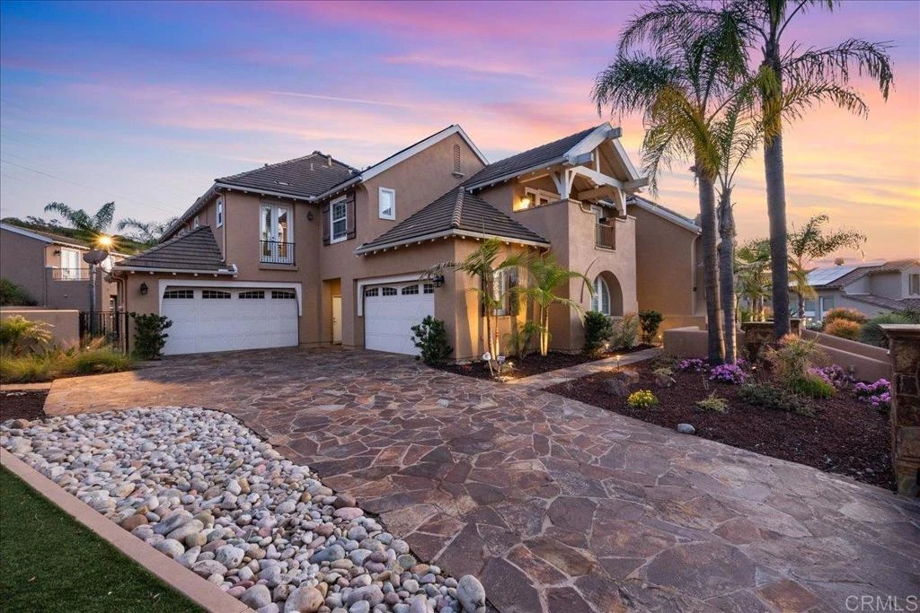 Gorgeous Stonebridge Executive Home with an abundance of amenities not found in many homes, including a huge beach entry pool complete with caves, waterfalls, 30 ft water slide and island! Two Palapas - one for entertaining and one above the BBQ and outdoor kitchen. The main home features a fantastic floor plan with 5 bedrooms in total, one bedroom down and 4 up (including the master), 4 full baths and 2 half baths. Enjoy the convenience of the one bedroom attached private casita with a living room and kitchen AND completely detached one bedroom pool house. The chef's kitchen is outfitted with Monogram, Dacor and Samsung appliances, wine cellar with custom stained glass door, home theater with jumbo screen and a half dozen recliners, and don't forget the sports bar! / library. Other features include a whole house fan, air con, 4 car garage, SPORT COURT with Basketball Hoop / PICKLEBALL COURT, EV charging station, fully paid for solar (55 panels in total). This lot is large and private, over 0.89 of an acre overlooking a picturesque canyon. Local neighborhood parks and nature trails. Poway Unified School District.