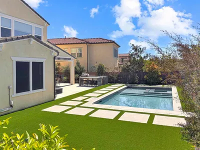 Welcome to this stunning home in the highly sought-after Del Sur community. With 5 bedrooms, 3.5 bathrooms, a private office, and over 3,145 sq. ft. of living space, this home offers a thoughtfully designed layout ideal for both everyday living and entertaining. The main level features dark hardwood flooring, high ceilings, and custom window treatments. The family room is centered around a gas fireplace, and stackable sliding glass doors open to the backyard oasis. The adjacent dining room also features sliding glass doors, creating seamless indoor/outdoor flow for entertaining. The kitchen is a chef’s dream with white cabinetry, a light gray subway tile backsplash, white quartz countertops, stainless steel appliances, and a walk-in pantry. The main level also includes a private office, a guest bedroom with a full bathroom, and an additional half bath. Upstairs, the primary suite is bright and spacious with upgraded cabinetry in the walk-in closet and an en-suite featuring dual sinks, built-in storage, a soaking tub, and a large shower with a waterfall showerhead. Three additional bedrooms share a bathroom with dual sinks and a shower/tub combination. The loft offers flexible space for a playroom, office, or media room, and the laundry room includes storage and a sink. Step outside to your private backyard oasis featuring a covered patio and seating area with a retractable screen, creating a comfortable space to relax or entertain year-round. The outdoor kitchen is complete with a built-in BBQ, sink, refrigerator, and island, perfect for hosting gatherings. The backyard also features a recently added $160k+ saltwater pool and spa with auto-cover by Zier Pools for added safety, along with low-maintenance landscaping, turf, and fruit trees including lemon, lime, and avocado. Additional highlights include an owned $35k+ solar system, an EV charger, a fire table, and a whole-home water filtration system. The three-car garage with epoxy flooring offers ample storage with built-in cabinetry and overhead storage racks. Don’t miss your chance to own in Del Sur—the ultimate choice for family-friendly living. Enjoy award-winning PUSD schools, 14 parks and 11 pools exclusively for residents, miles of hiking trails, community events year-round, and convenient shopping. This location is within easy driving distance to the Del Sur town center for Sprouts Farmers Market, Target, Starbucks, restaurants, fitness clubs, and more.