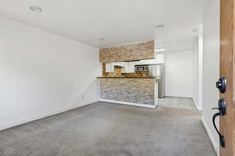 Beautifully updated upstairs 1 bed, 1 bath condo 521 sq ft located in the gated Las Palmas Villas community in Oak Park. This move-in ready home features an open and functional layout with laminate flooring in the kitchen and bath, fresh interior paint thoughout and carpet in the living room & bedroom. The upgraded kitchen showcases granite countertops, shaker-style cabinetry, stainless steel appliances, and recessed LED lighting, creating a bright and modern space. Dual pane windows enhance energy efficiency and comfort throughout. The bathroom has been tastefully updated with a vanity, fixtures, and an in-unit washer/dryer for added convenience. The spacious bedroom includes a large walk-in closet, providing ample storage. Ideally situated in a gated community with easy access to shopping, dining, and commuter routes, this home is perfect for first-time buyers, investors, or those seeking low-maintenance living in a central San Diego location. Less than 10 minutes to downtown San Diego!