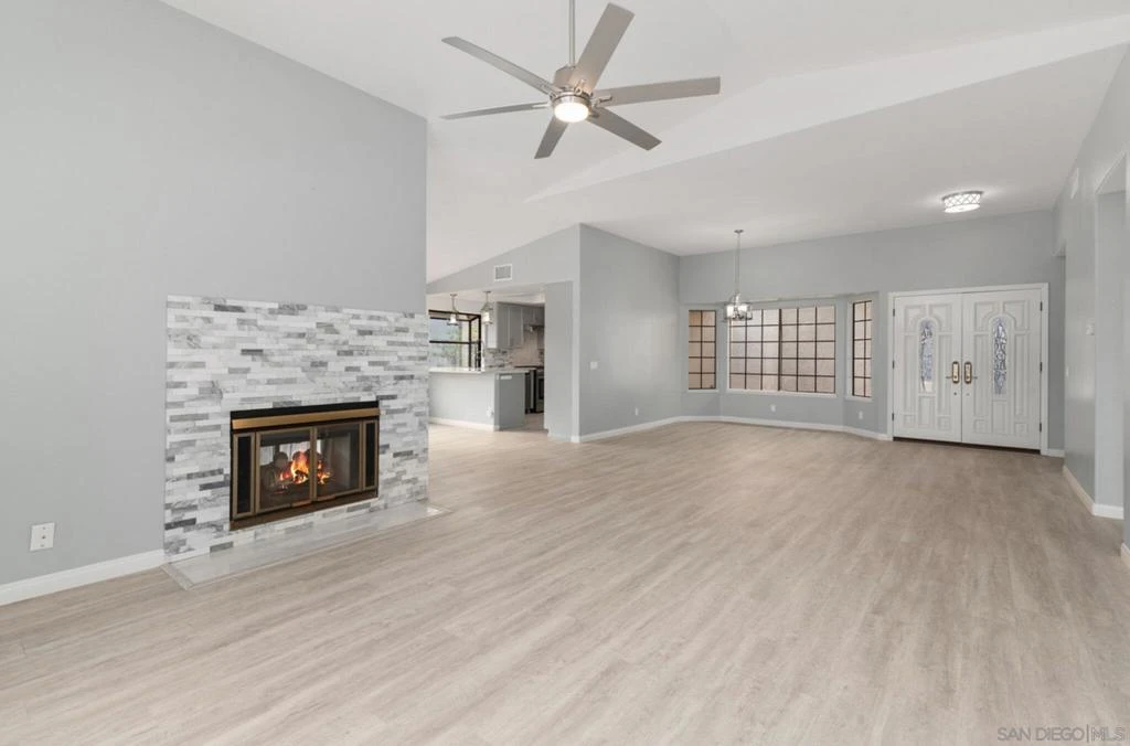 Completely remodeled single level home with valley views and a private heated pool in the highly sought after Marbella enclave of the Oaks North 55 plus community in Rancho Bernardo. This rare 1,966 sq ft home blends modern upgrades with resort style outdoor living overlooking the scenic San Pasqual Valley. This stunning residence sits on a 7,376 sq ft lot and has been extensively updated with a brand new kitchen, beautifully renovated bathrooms, and new flooring throughout. Vaulted ceilings and abundant natural light enhance the spacious open floor plan featuring a living room and familyroom connected by a dramatic double sided fireplace. The redesigned kitchen offers quartz countertops, gas cooking, and generous prep space ideal for cooking and entertaining. The primary suite offers a relaxing retreat with a soaking tub and separate shower. Step outside to an expansive patio overlooking your private heated swimming pool and valley views, creating the perfect setting for sunset evenings and indoor outdoor living. Located within the Oaks North 55 plus community, residents enjoy access to golf, recreation facilities, walking paths, and nearby Rancho Bernardo shopping and dining. Rare opportunity to own a fully renovated Marbella home with views and a private pool in one of San Diego’s most desirable 55 plus communities. Remodeled single level Rancho Bernardo home with valley views and a private heated pool in the Oaks North 55 plus community. Welcome to a beautifully remodeled single level home in the highly sought after Marbella enclave of the Oaks North 55 plus community in Rancho Bernardo. Homes in this neighborhood are known for their peaceful setting, golf course lifestyle, and single story living, but finding a property that combines modern renovations, valley views, and a private swimming pool is exceptionally rare. This residence delivers all three. Spanning approximately 1,966 square feet and situated on a 7,376 square foot lot, this home captures scenic views of the San Pasqual Valley while offering the comfortable indoor outdoor lifestyle that makes San Diego living so desirable. Since purchasing the home, the current owners have completed an extensive transformation. The property now features a brand new kitchen, beautifully renovated bathrooms, and new flooring throughout, creating a fresh and contemporary feel from the moment you enter. Vaulted ceilings and large windows fill the home with natural light and enhance the open, spacious floor plan. Multiple living areas allow for flexibility whether hosting friends, enjoying a quiet evening at home, or accommodating visiting guests. A dramatic double sided fireplace connects the living room and the den, creating warmth and ambiance while maintaining the flow between spaces. At the heart of the home is the redesigned kitchen. Featuring quartz countertops, gas cooking, and generous prep space, it offers both style and functionality for everyday living or entertaining. The layout opens comfortably into the living areas, making it easy to stay connected with guests and family while cooking. The primary suite serves as a private retreat within the home. The spa inspired bathroom includes a soaking tub and separate shower designed for relaxation and comfort. Two additional bedrooms plus a versatile den provide flexibility for guests, hobbies, or a home office. Step outside and the lifestyle truly comes to life. The expansive back patio overlooks the scenic San Pasqual Valley and your own private heated swimming pool. Whether enjoying morning coffee, relaxing in the sunshine, or hosting evening gatherings with friends, this outdoor space captures the best of Southern California living. Private pool homes in Oaks North are uncommon, making this property a standout opportunity within the community. Additional highlights include an upgraded HVAC system installed by the current owners, spacious outdoor living areas, and a lot size that offers both privacy and ...